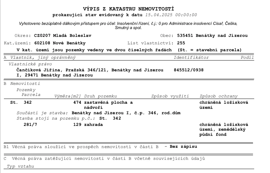 * Dům stále obývá rodina dlužnice (3 členové rodiny).
