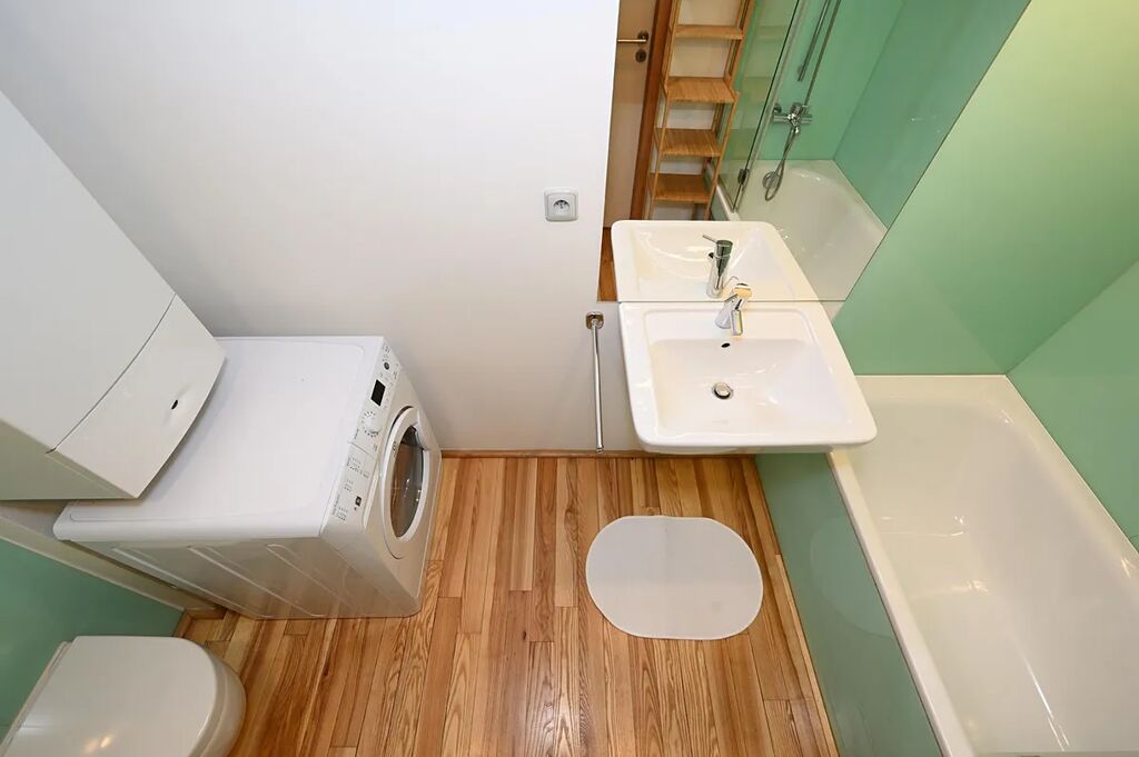 Jedna neprůchozí ložnice + obývací pokoj s plně vybavenou kuchyní všemi spotřebiči - sporákem, troubou, digestoří, myčkou., pračkou. Koupelna s vanou a toaletou.