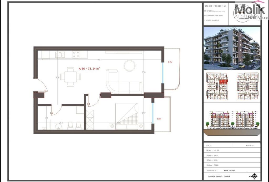 Nabízíme k prodeji moderní apartmán o velikosti 73.24 m2 v Mali i Robit, okres Kavajë v developerském projektu. Termín dokončení stavby je leden 2027.