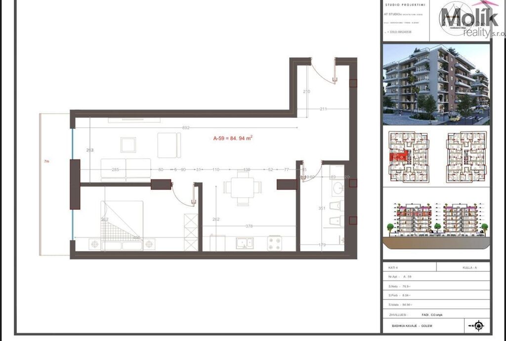 Nabízíme k prodeji moderní apartmán o velikosti 84.94 m2 v Mali i Robit, okres Kavajë v developerském projektu. Termín dokončení stavby je leden 2027.