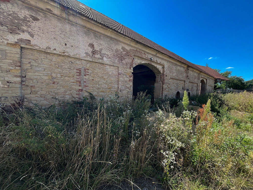 V jihozápadním koutě se dochovalo torzo chlévů na půdorysu písmene L s klenutým dvoulodím a původní dlažbou.