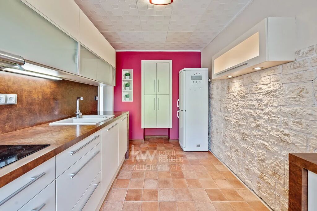 Byt je orientován na jih do zeleně, což zajišťuje dostatek denního světla a příjemný výhled. Vytápění je řešeno starším kondenzačním kotlem. Okna jsou plastová a byla již vyměněna, stejně jako u celého domu. Pro investory je byt připraven k okamžitému pronájmu – není nutná žádná počáteční investice.