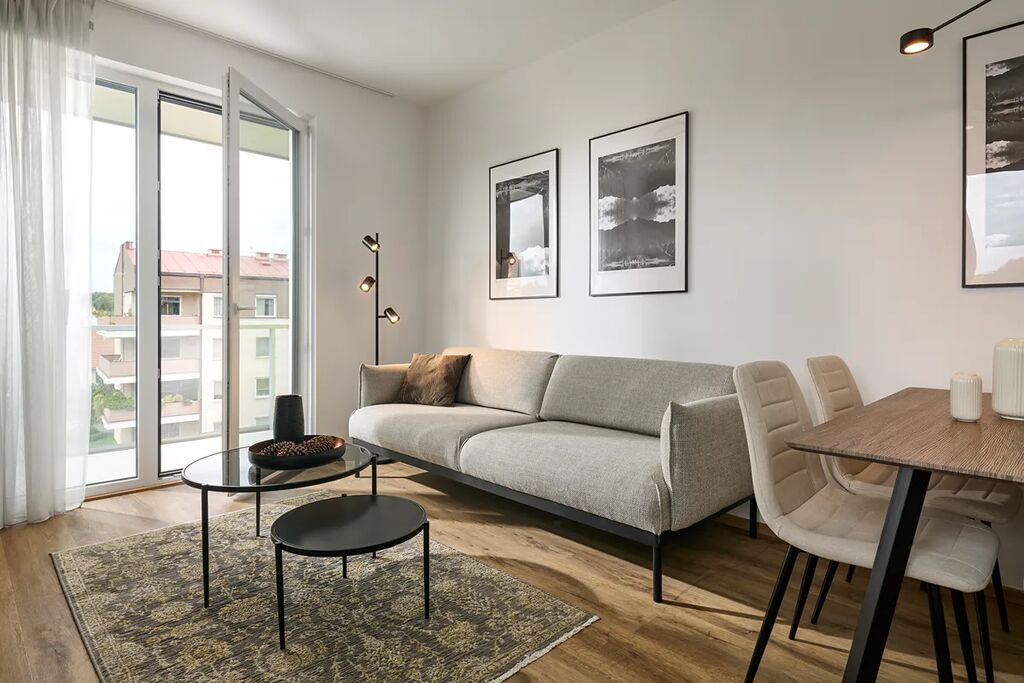 V ceně odstupného je zahrnuto prostorné garážové stání v 1.PP a a prostorná sklepní kóje s plochou 5 m². Je možnost využívat komunitní terasu v 6.NP, která poskytuje příjemné místo pro relaxaci a výhledy do klidné části. Je možné využít kočárkárnu a kolárnu s prostorem pro mytí kol a psů. V domě je kamerový systém. Převod bytu do OV je možný po doplacení zbývající anuity.
