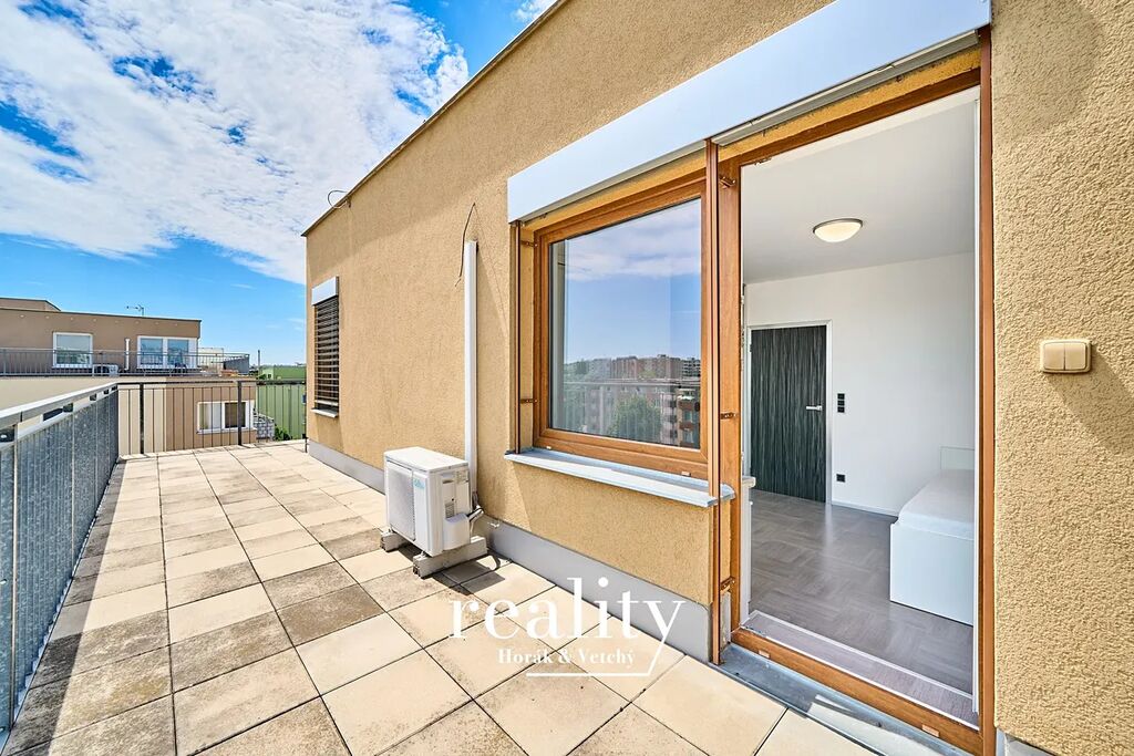 Tento byt však nabízí mnohem víc než jen obytnou plochu – součástí je terasa o výjimečné výměře 50 m² s úchvatným výhledem na Loucký klášter, Znojemské vinice a okolní krajinu. Díky svému tvaru do "U" poskytuje maximální soukromí, prostor pro relaxaci, zahradní nábytek, grilování i případné umístění zeleně či vířivky. Tento výhled a pocit prostoru je v této lokalitě naprosto jedinečný.