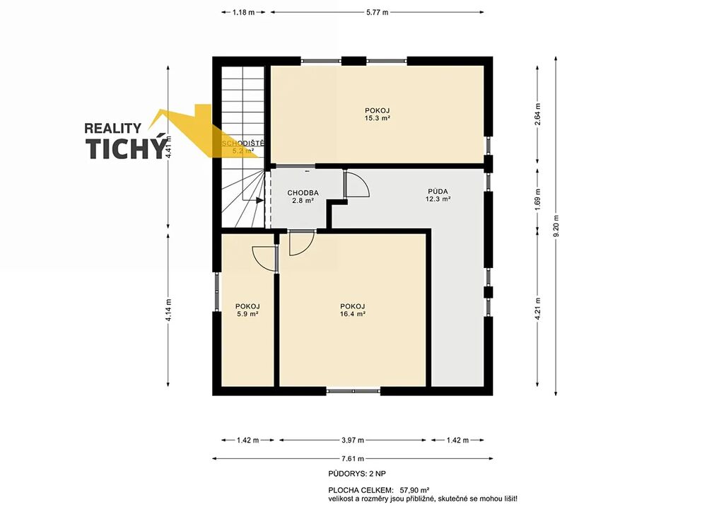 • celková výměra 561 m2, z toho je 89 m2 zastavěná plocha
