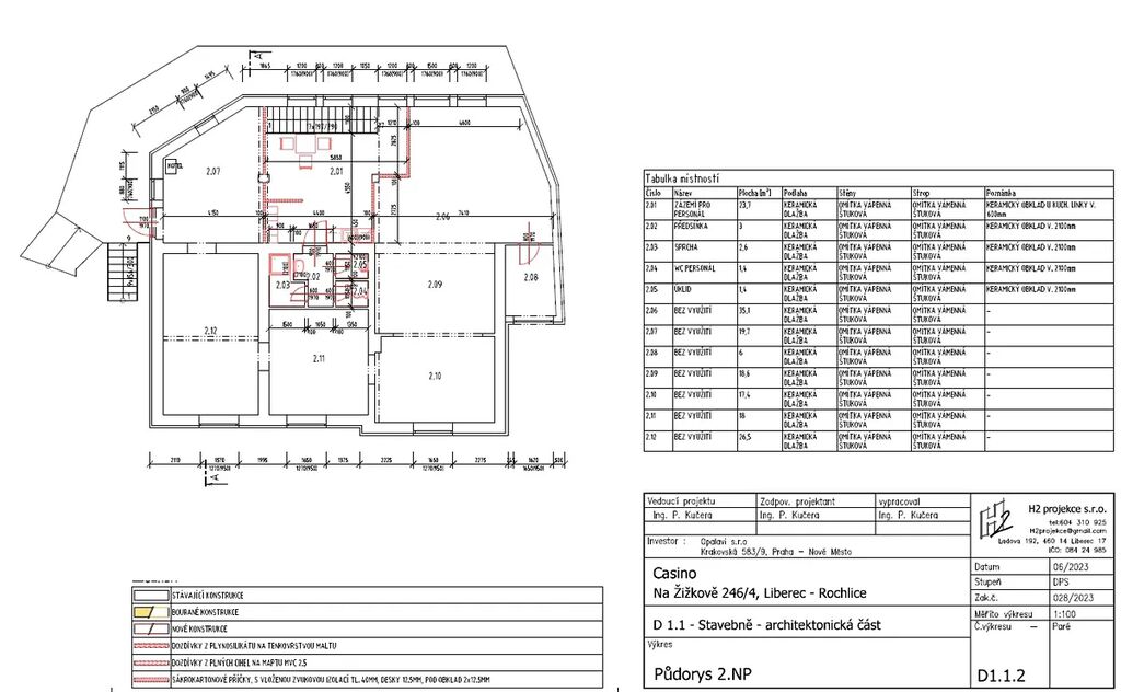• Velká místnost (č. 2.06, 2.09, 2.10): 71,1 m²