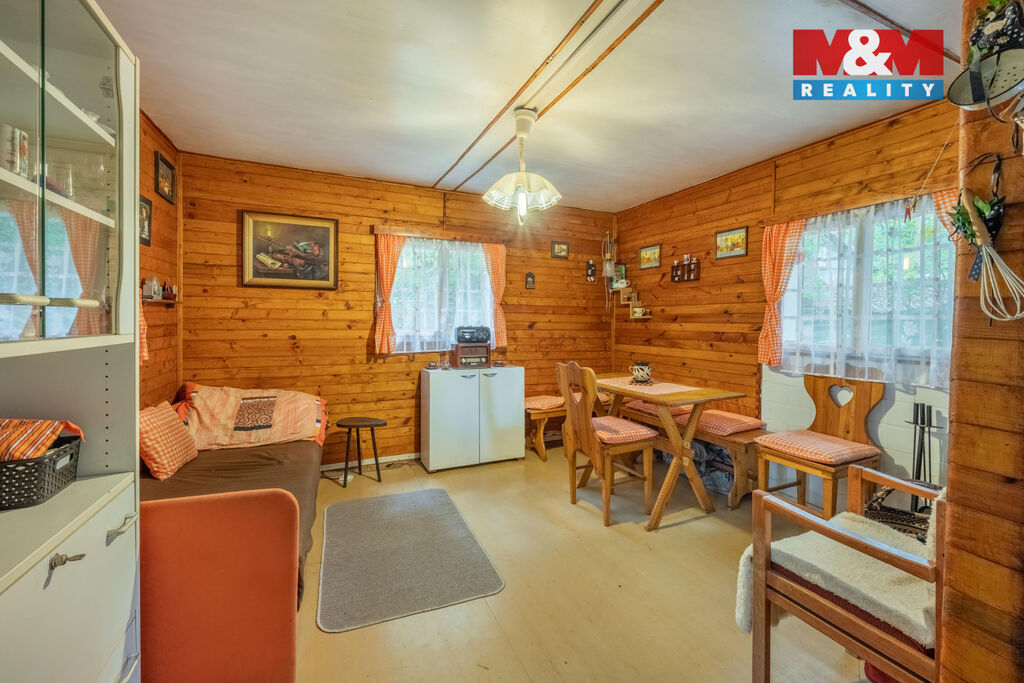 Nabízíme k prodeji útulnou dřevěnou chatu v okrajové části obce Markvarec, zasazenou do příjemného prostředí hustého lesa. Tato samostatně stojící chata disponuje dvěma nadzemními podlažími a malým sklepem, celkem nabízí tři místnosti a zastřešenou terasu, ideální pro relaxaci. Chata se nachází na pozemku Lesů ČR s nájemní smlouvou a nabízí užitnou plochu 45 m² na pozemku o rozloze 36 m². Přestože nemá zavedenou vodu a je vybavena chemickým WC, její poloha v blízkosti koupaliště a dobrá dostupnost z Loun i Žatce z ní činí ideální místo pro víkendové pobyty. Vhodná pro milovníky přírody hledající klid a únik od městského shonu.