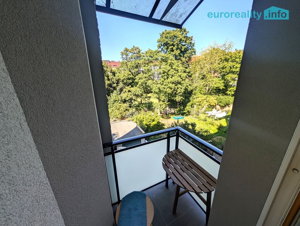K bytu náleží také balkon orientovaný do klidného vnitrobloku, kde si můžete vychutnávat ranní kávu nebo večerní relaxaci. V tomto vnitrobloku se nachází společná zahrádka, která poskytuje výborné místo pro odpočinek a setkání s přáteli. Dále je k dispozici přímý vstup do parku, ideální pro příjemné procházky a posezení v přírodě.