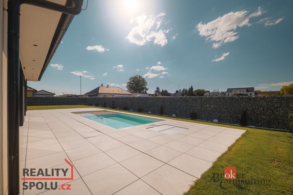 We are pleased to offer for sale a luxuriously equipped and spacious single-storey family home with a smart home system, featuring a layout of 4 rooms + kitchenette and a total usable area of 268 m². The property is located in a quiet residential part of Úherce (Plzeň-North district).