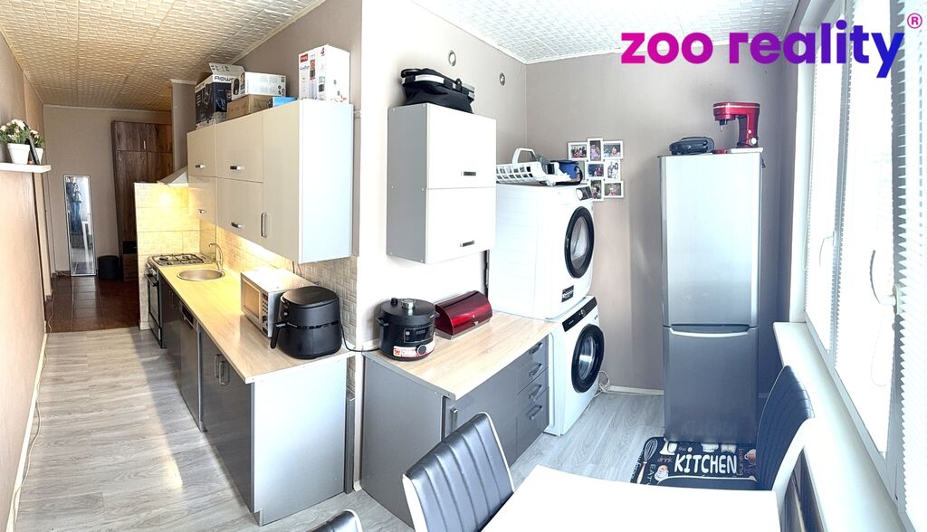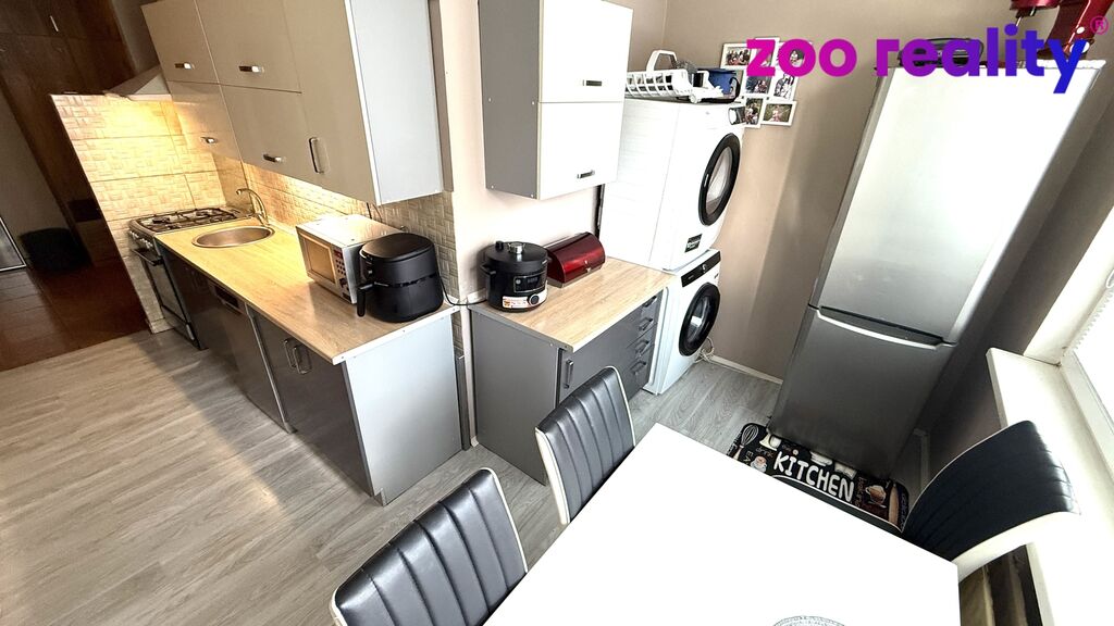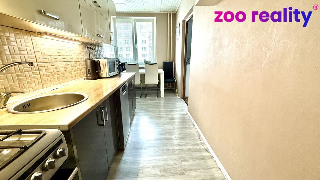 Nabízíme k prodeji byt v družstevním vlastnictví v panelovém zatepleném domě. Byt je dispozičně řešen z 2+1 na 3+1 (přepažen sádrokartonovou příčkou s okénkem). Byt se skládá z rohové kuchyně s plynovým sporákem, obývacího pokoje, k němuž náleží zasklená lodžie, ložnice a dětského pokoje. Koupelna má sedací vanu, umyvadlo a WC. Jádro v bytě je obložené sádrokartonem, jsou zde nové elektrické rozvody. Předsíň má na podlaze keramickou dlažbu, pokoje s kuchyní mají plovoucí podlahu. Přepis bytu činí 9.600,- Kč.