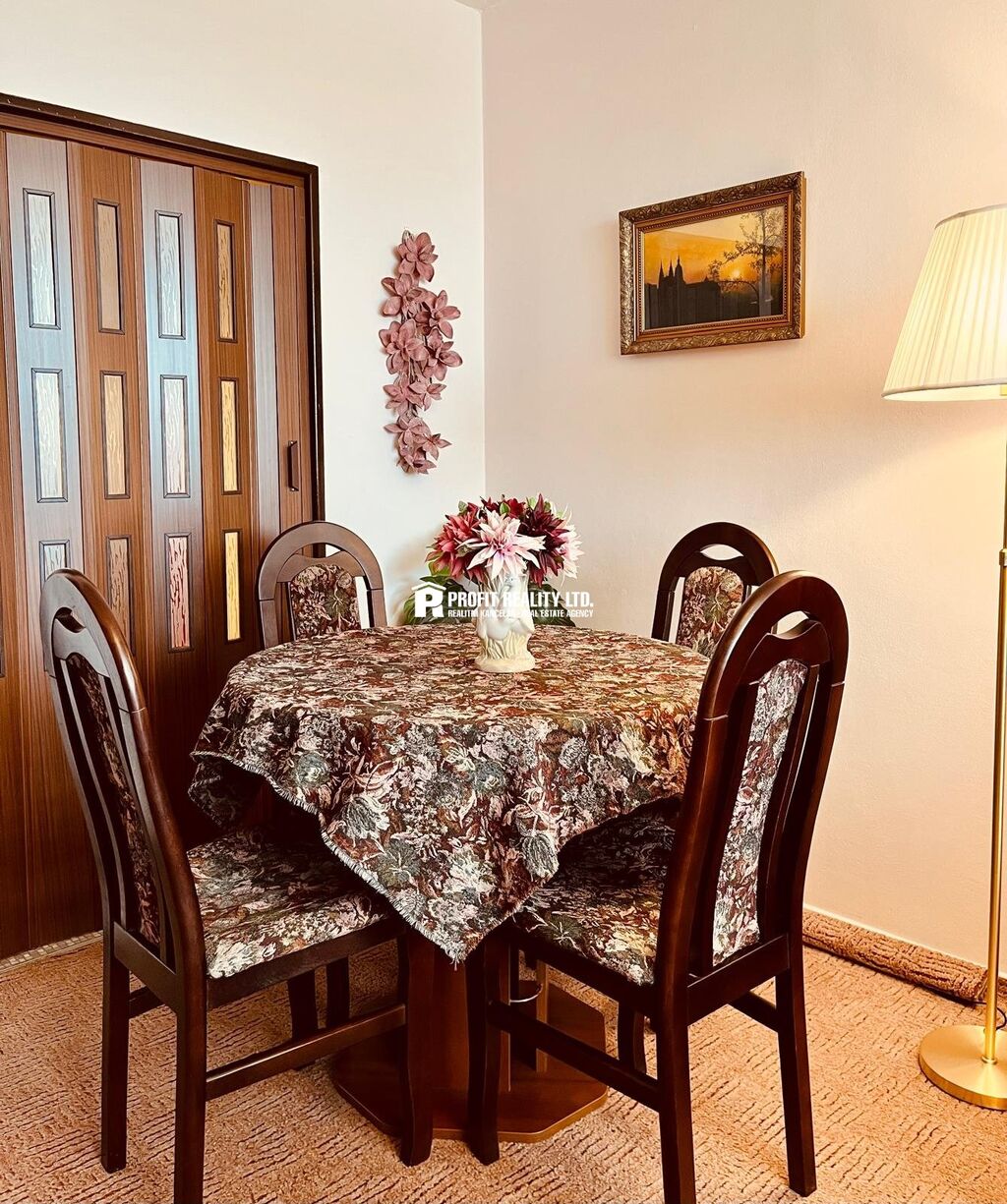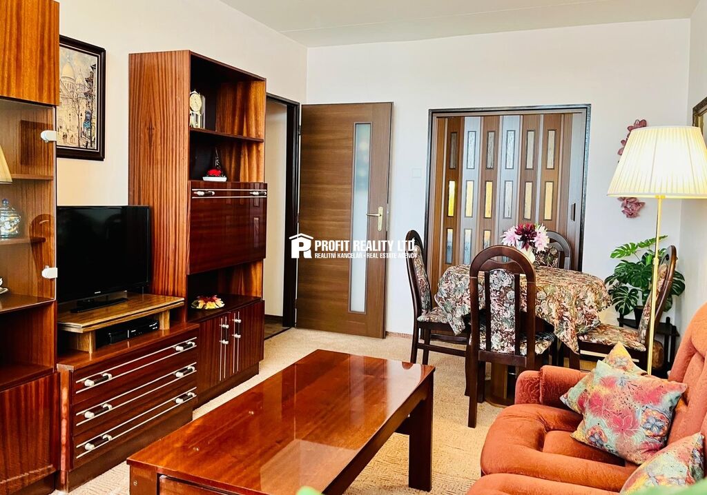 Byt se skládá z obývacího pokoje (16m²) s kuchyňským koutemc (5m²), ložnice (12m²), předsíně (7m²) , koupelny a toalety. Byt má plastová okna, v koupelně sprchový kout. K bytu náleží sklepní kóje.