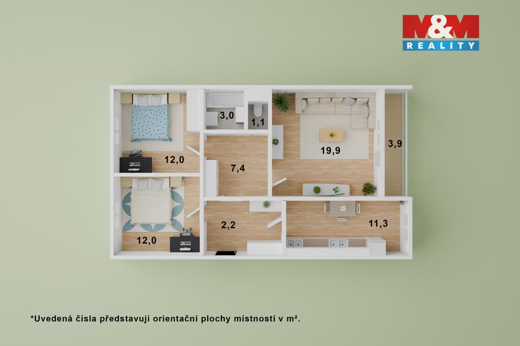 Nabízíme k prodeji hezký byt 3+1 o užitné ploše 74 m², ideální pro rodinné bydlení.