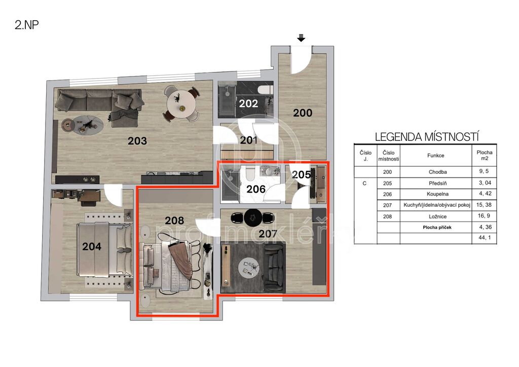 Ve výhradním zastoupení majitele nabízím MODERNÍ BYT 2+kk o podlahové ploše 44,1 m2. Výměra zahrnuje obývací pokoj s kuchyňským koutem, ložnici, předsíň a koupelnu s toaletou. K bytu dále náleží nádherná terasa orientovaná do zahrady, 9,3 m2, ze které je následně přístupná zahrada s výměrou 31,5 m2. Na uložení sezonních věcí poslouží sklad 3m2. U parkovacího stání před domem bude připravena přípojka pro dobíjení elektromobilu patřící výhradně pro tento byt.