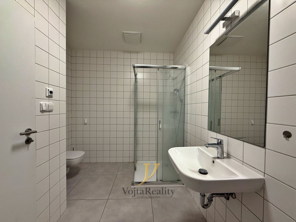Dispozice bytové jednotky nabízí prostornou vstupní chodbu, koupelnu se sprchovým koutem a toaletou, obývací pokoj s kuchyňským koutem a ložnici. Kuchyňská linka je vybavena sklokeramickou varnou deskou a vestavěnou horkovzdušnou troubou. Vytápění jednotky je řešeno formou podlahového vytápění. Bytová jednotka se pronajímá bez vybavení nábytkem. K bytu náleží sklepní koje.