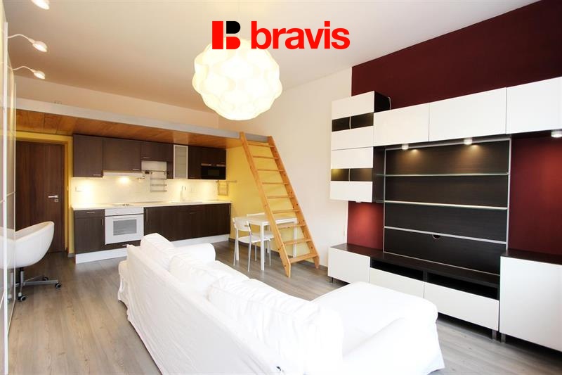 Ve výhradním zastoupení majitele nabízíme k pronájmu zařízený byt 1+kk na ulici Štěpánská v Brně - Trnitá se spací galerií a sklepní kójí.
