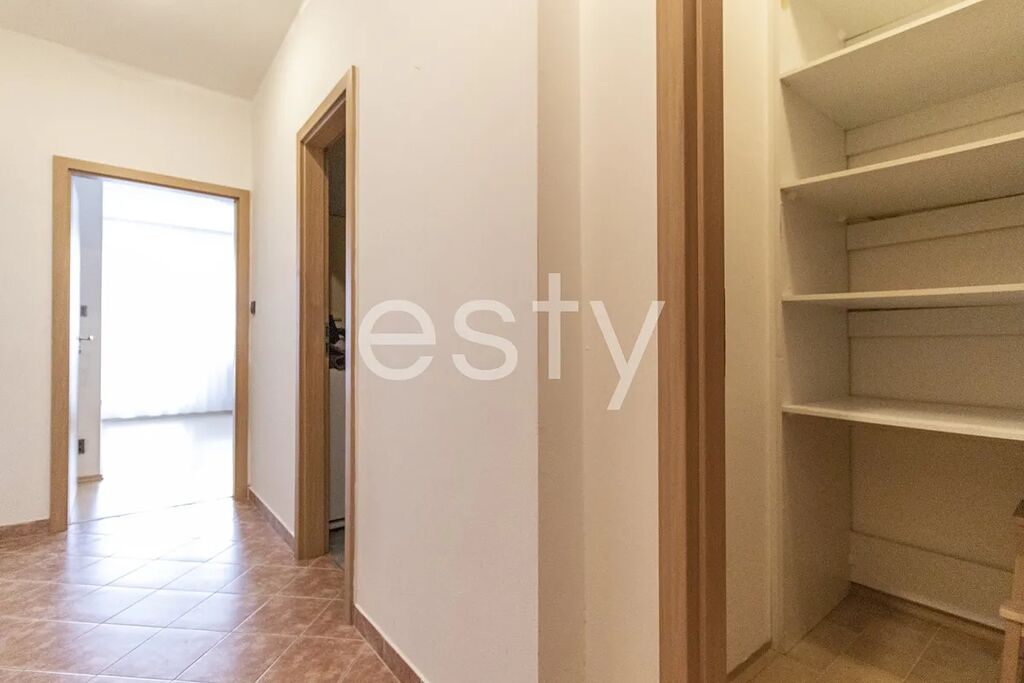 Z chodby (6,9m²) je přístup do menší šatny a komory, které spolu s vestavěnou skříní při vstupu do bytu poskytnou dostatek úložného prostoru.