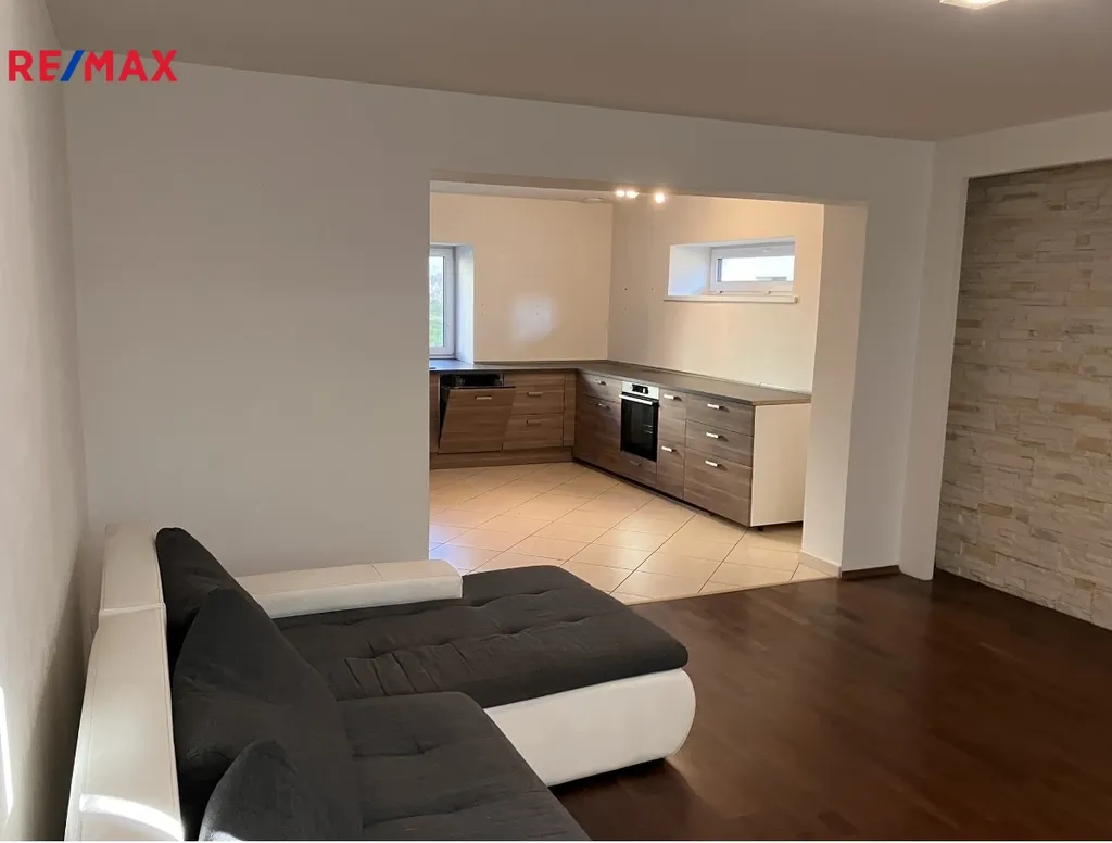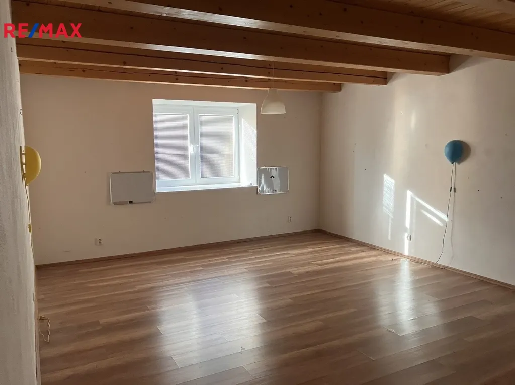 dva pokoje,kuchyňská linka, koupelna s WC a dále pak dalšími půdními prostory které navazují a jdou tak rozšířit o další pokoje případně pro jiné využití.