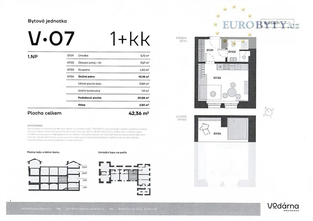 Dovolujeme si Vám s výhradním zastoupením vlastníka nabídnout k pronájmu luxusně zařízený byt o velikosti 1+kk s mezonetovým patrem ( sloužit může jako úložný prostor a ložnice ), v jedinečné rezidenci Vodárna na rozhraní Nuslí a Vršovic v ulici Bartoškova 3. Pouze 1ř bytů. Umístění bytu je v historické památkově chráněné budově nedaleko Vršovického nádraží, která prošla totální renovací a výstavbou nových 16 ti bytů z nichž tento se nachází v prvním patře ze 2 s jihozápadní orientací do Bartoškovy ulice mezi krásné vzrostlé stromy. Byt je ve vysokém standardu vč. zařízení bytu jako je vybavená kuchyně, úložné prostory a vestavěná skříň atd. Každý detail všech bytových jednotek v rezidencevodarnacz byl pečlivě promyšlen s ohledem na estetiku a výjimečnost tohoto unikátního objektu s cílem vytvořit útulné a příjemné prostředí, které bude odrážet Vaši osobnost a styl. K bytu patří i velký sklep v přízemí domu. Lokalita je velice klidnou s veškerou potřebnou infrastrukturou v místě v dochozí vzdálenosti. Vlak 6 min na Hlavní nádraží a ve výstavbě i metro.  Vratná kauce vždy ve výši jednoho nájmu s poplatky. RK výhodně odměna RK pouze 1/2 nájmu s poplatky + DPH.