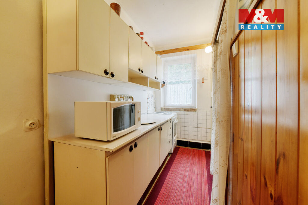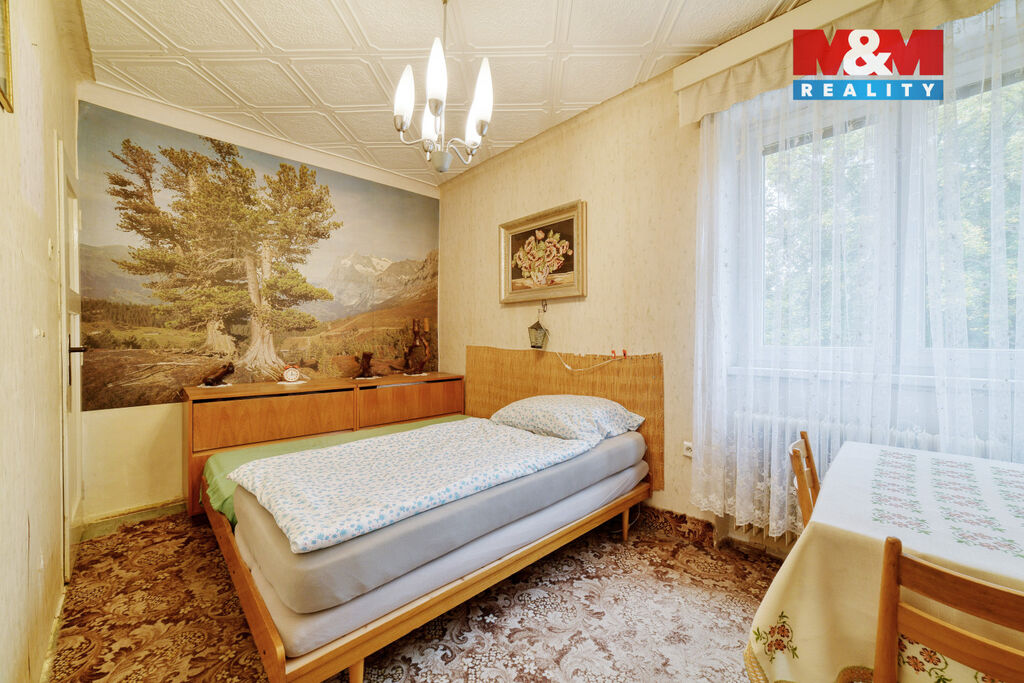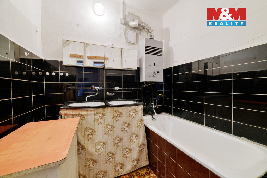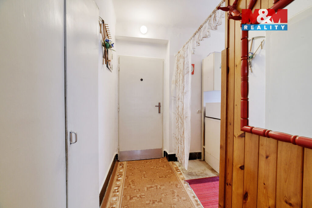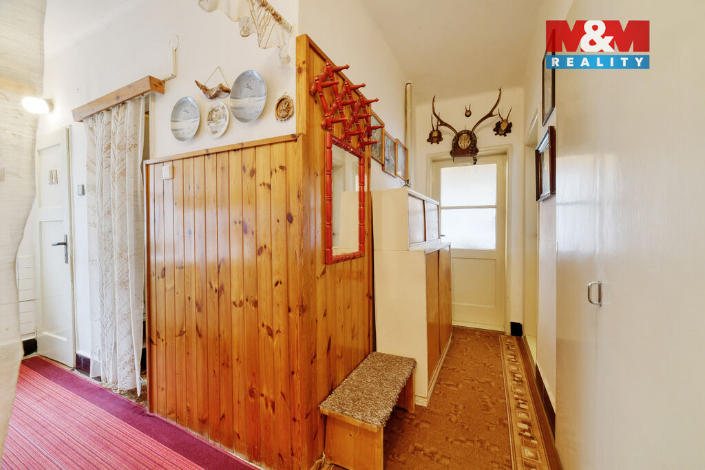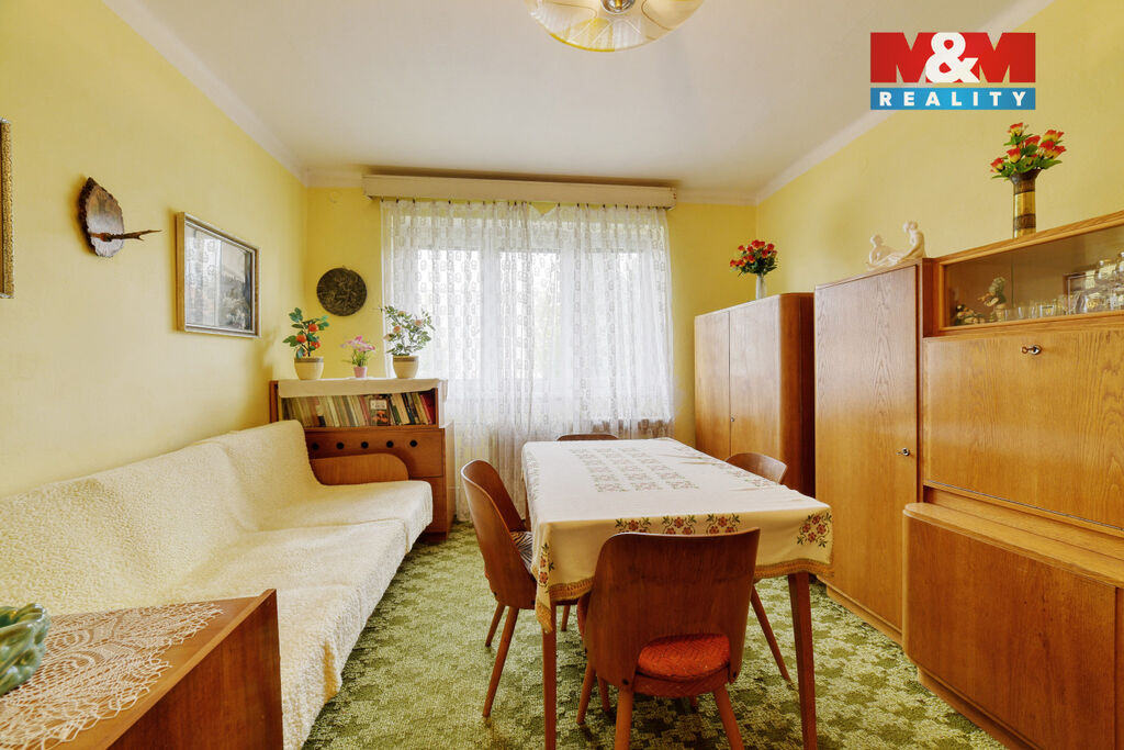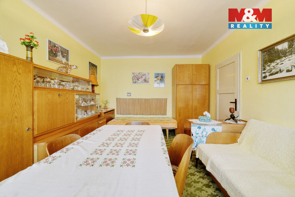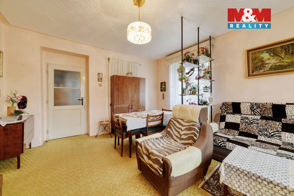 Interiér vyžaduje rekonstrukci – právě to však otevírá skvělou možnost vytvořit si bydlení přesně podle vlastních představ. Velkým plusem je také prostorné podzemní podlaží se sklepními prostory s plochou celkem 16 m², které nabízí praktické úložné zázemí.