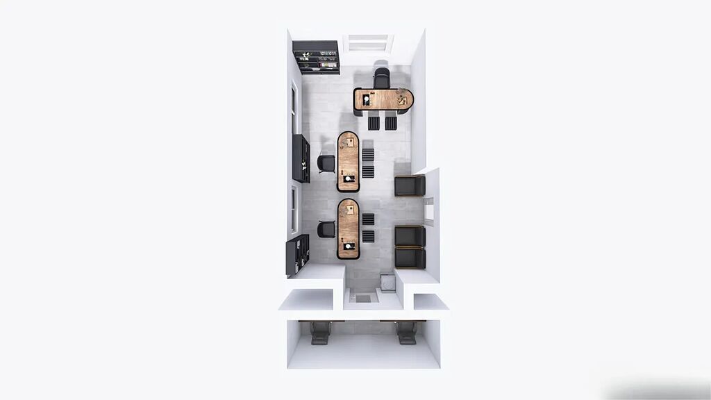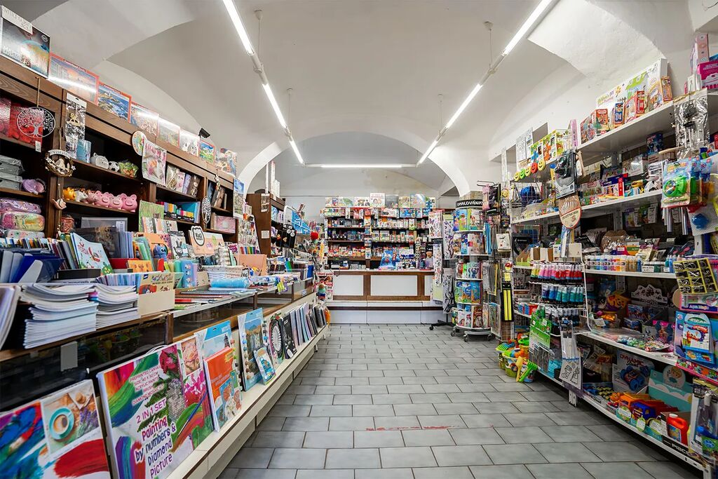 V přízemí domu už dnes fungují dva zavedené obchodní prostory – papírnictví (87 m²) a kancelář se zadním vstupem (23 m²). Oba prostory jsou dlouhodobě pronajaty a přinášejí novému majiteli pravidelný příjem od prvního dne.