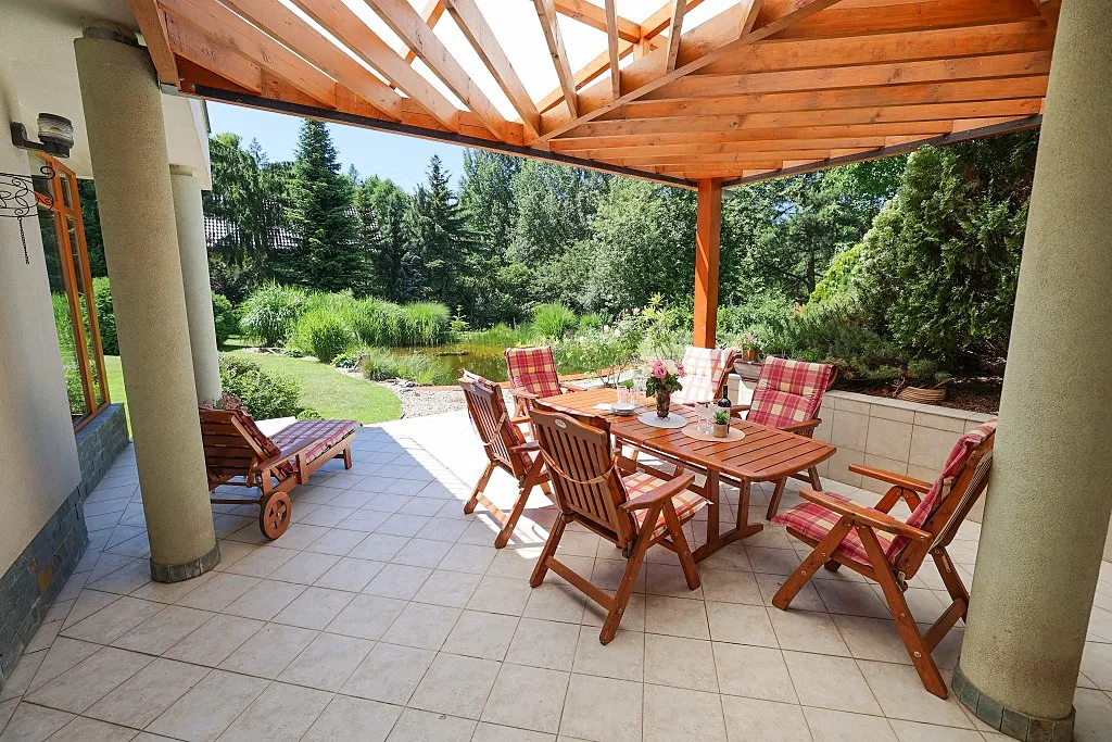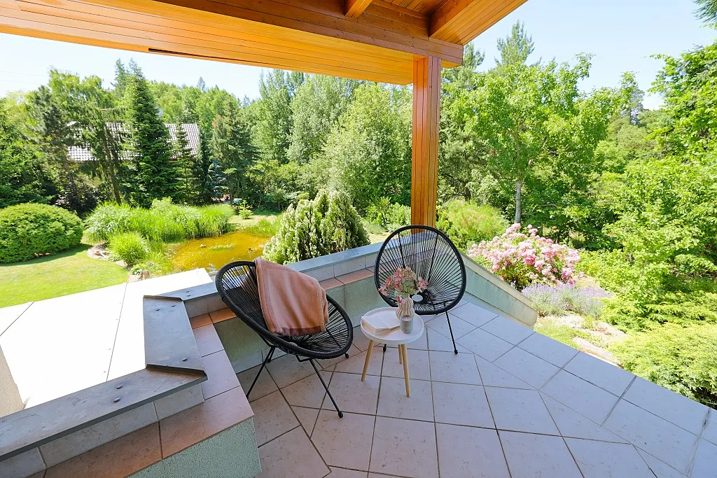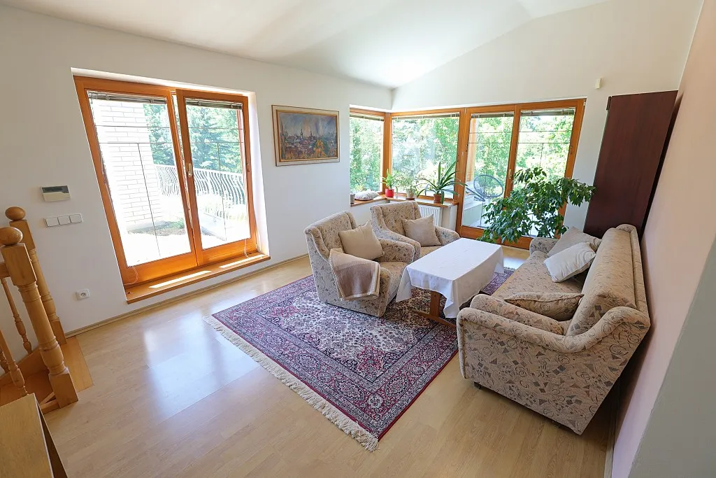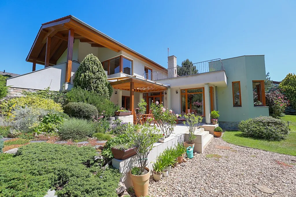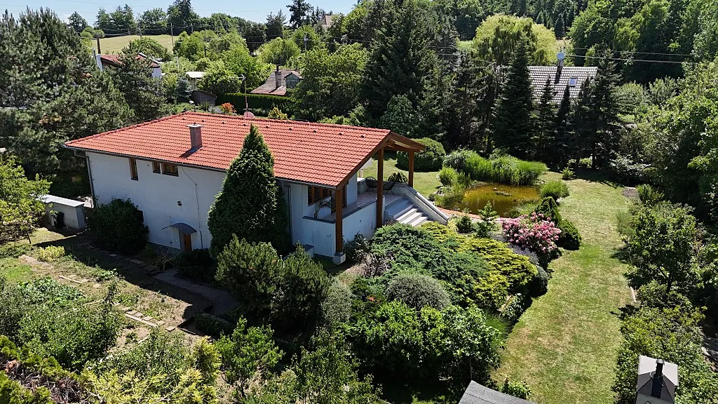 V zastoupení majitele nabízíme k prodeji zajímavě řešenou vilu, postavenou před 20 lety podle návrhu architekta Radko Květa v Brně – Útěchově, na ulici Rozcestí, v krásném prostředí uprostřed zeleně. Dvoupodlažní zděná stavba s valbovou střechou disponuje šesti pokoji a kuchyní, velkorysým zázemím s úložnými prostory, garáží pro dvě vozidla i vlastním venkovním parkováním. Osvěžení v letních dnech zajišťuje koupací biotop a v chladných dnech zpříjemňuje atmosféru vnitřní krb. Okrasná zahrada o rozloze 1685 m2 s řadou rozličných květin a porostů dokresluje komfort bydlení, majitel pamatoval i na hospodářskou část. Vilu je možné užívat i jako dvougenerační, patro má technickou přípravu pro kuchyni a venkovní wellness, a je z něj samostatný přímý vstup do zahrady.