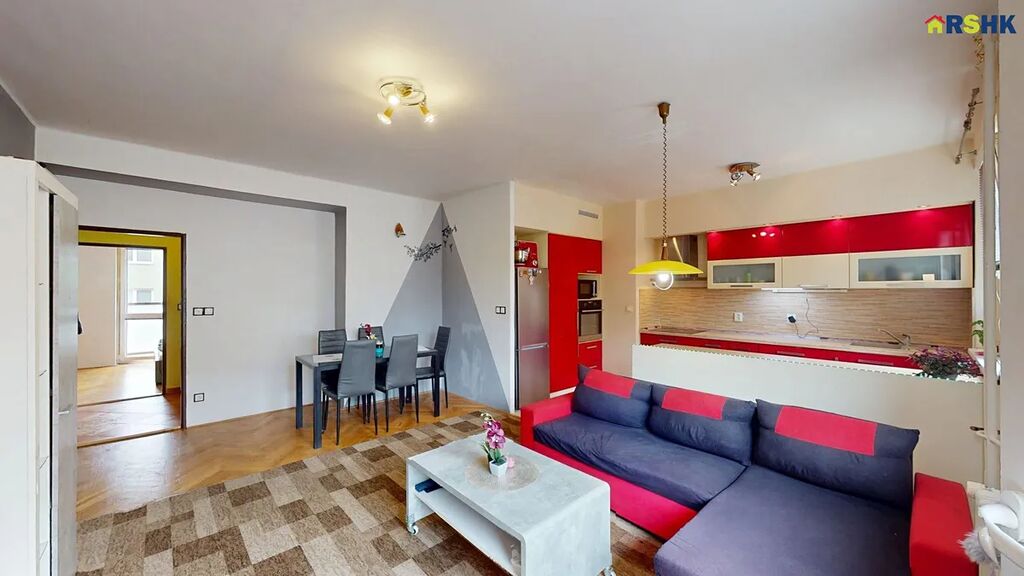 4+KK — obývací pokoj s kuchyňským koutem a jídelnou + tři samostatné pokoje