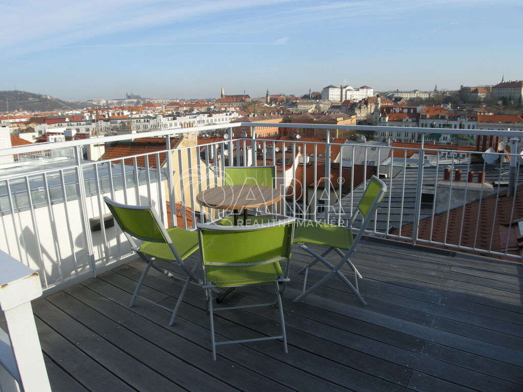 Nabízíme k pronájmu velice příjemné a zařízené 3+kk (88 m²) se střešní terasou (9 m²) ve 4. patře vkusně a kompletně zrekonstruovaného činžovního domu s výtahem nedaleko centra v městské části Praha 2.