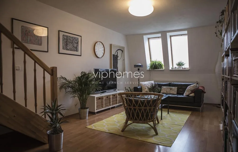 Zastávky autobusu a tramvaje v docházkové vzdálenosti (2 minuty) s přímým spojením do komerčně-obchodního centra Anděl. Poplatky za společné domovní služby a energie ve výši 6.000,- Kč měsíčně.