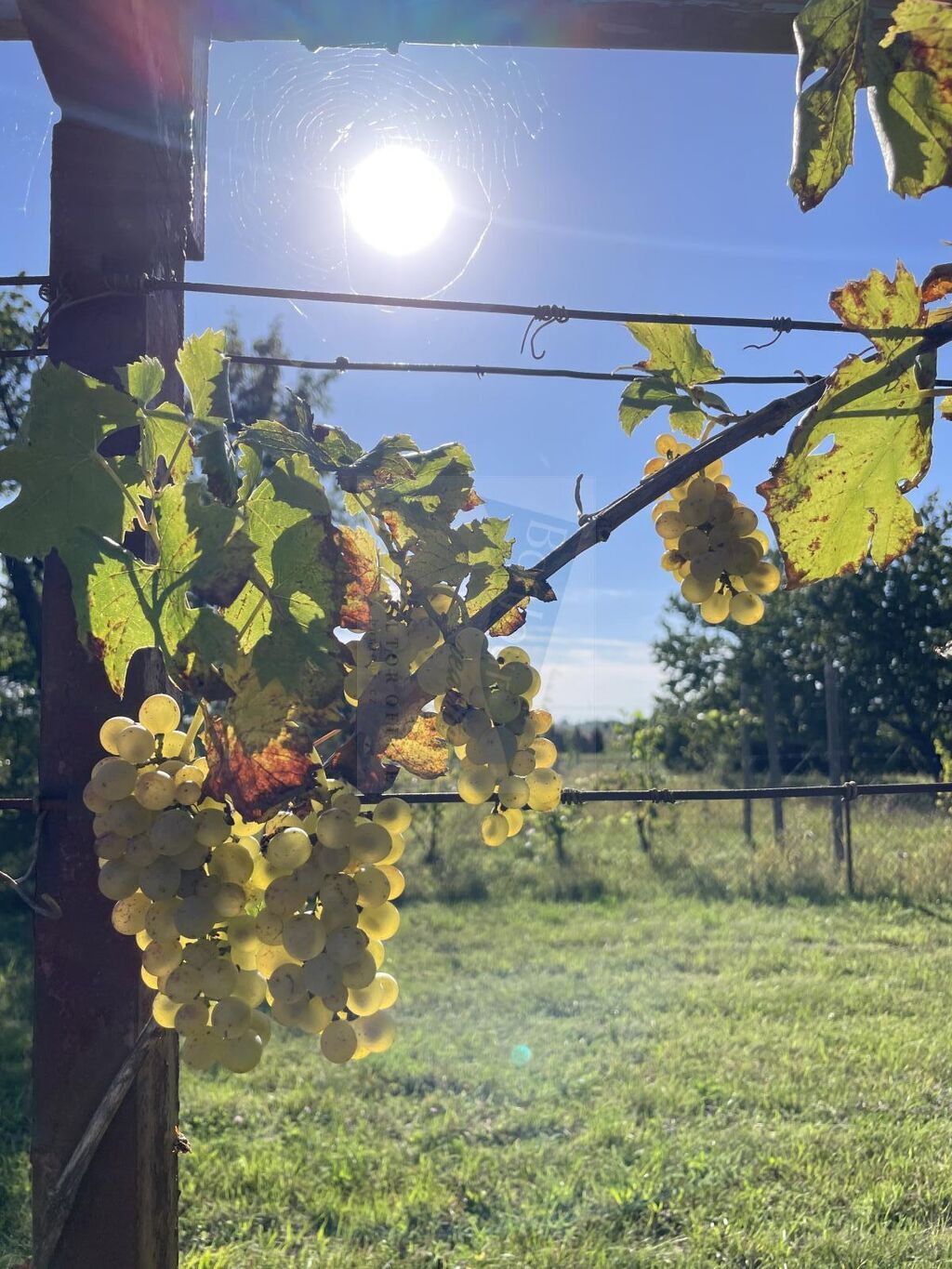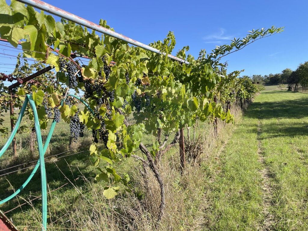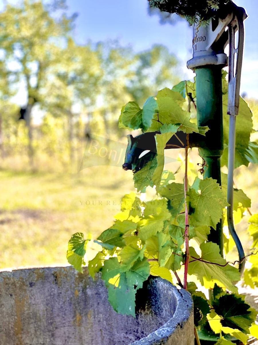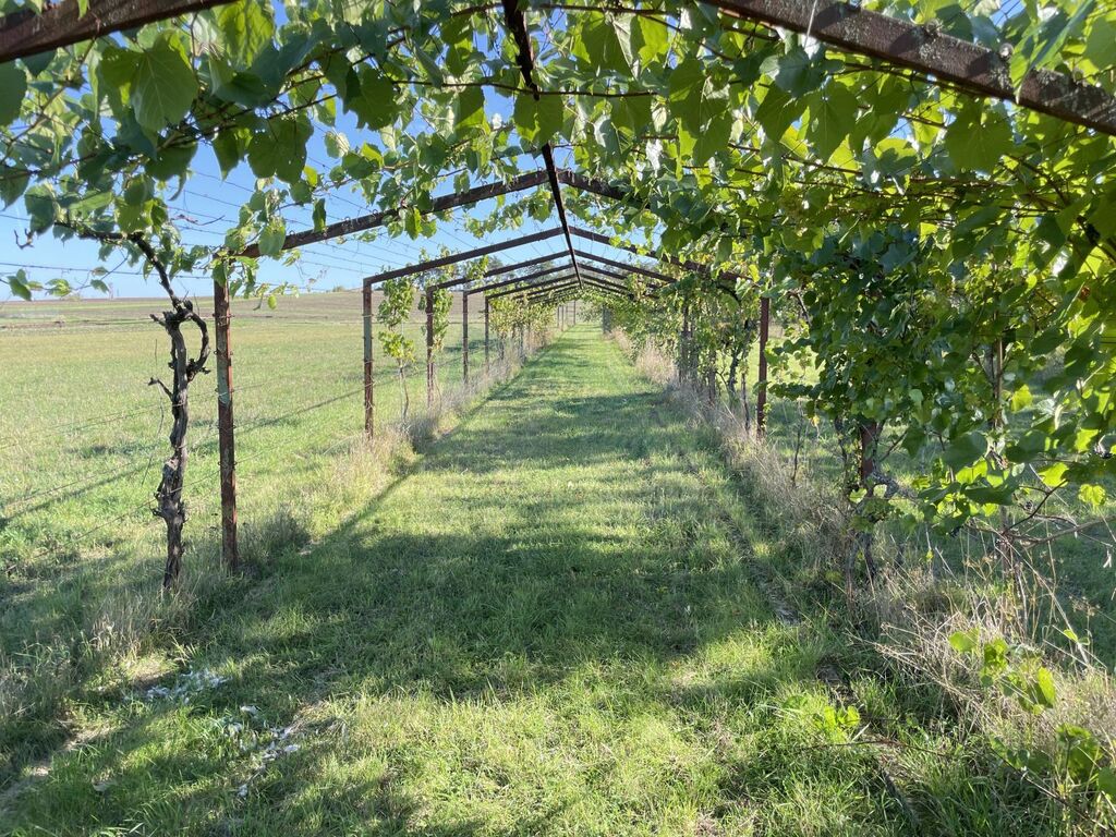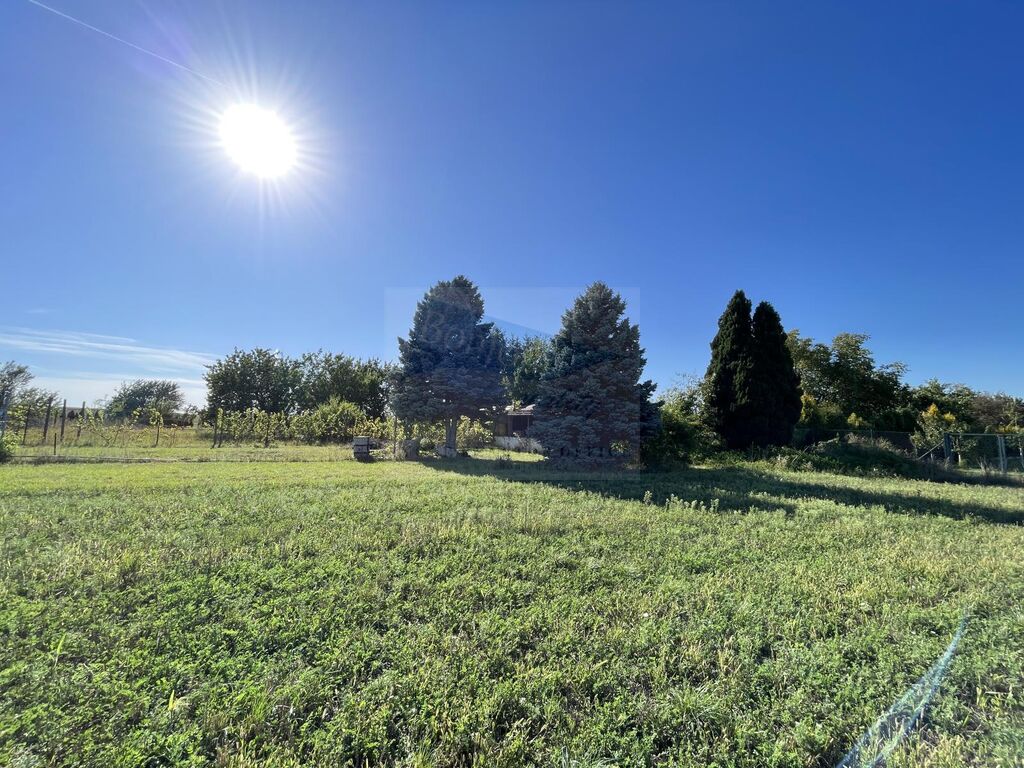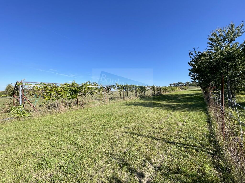 Pozemek je osazen úrodnými ovocnými a vzrostlými okrasnými stromy, kdy mezi nimi jsou křehká jablka, slaďoučká hruška, voňavé švestky, dále perfektně rodící vinné révy s plnými hrozně různými odrůdy. Po většina délky je na části zahrady vybudovaná kovová pergolová konstrukce, na kterou jsou přivázané jednotlivé révy. Pro případ ještě většího nadšení do zahradnictví, lze tuto pergolu velice jednoduše předělat na skleník. Je o šířce a výšce projektovaná tak, aby ji mohlo projet i větší osobní či terénní auto. Tím by mohla být uvnitř velice snadno a jednoduše obráběná a spravovaná. Na rohu konstrukci, u příjezdu, je vyvýšená i velká kovová nádrž na vodu, napájena zavlažovacím systémem studnou, což umožnuje velice jednoduché zásobování vodou jak úrody na zahradě, tak i v pergole (eventuálního budoucího skleníku).