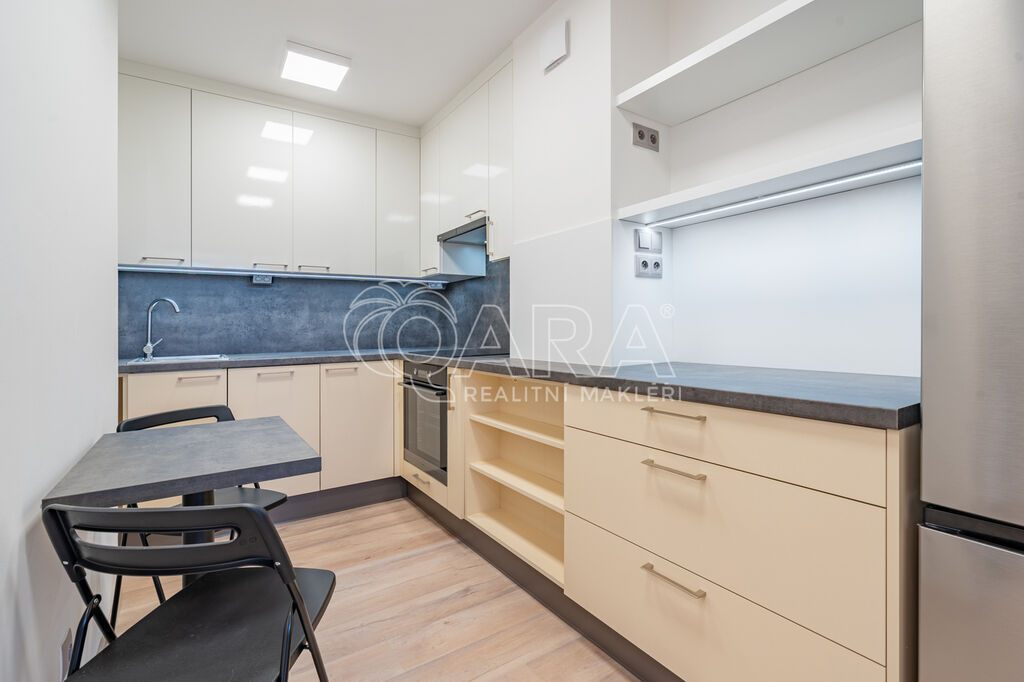 • kompletní moderní rekonstrukce (nové příčky, podhledy, elektroinstalace, EZS, posuvné dveře, vinylové podlahy, koupelna, kuchyně se spotřebiči)