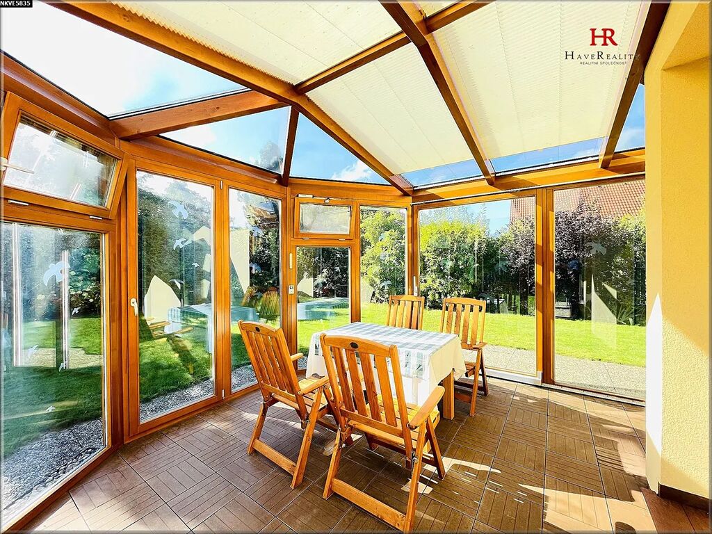 Topení: plynový kondenzační kotel Protherm – zajišťující ohřev TUV i vytápění domu prostřednictvím radiátorů. Podlahy – dlažba, dřevěná plovoucí a lino. Plastová okna, opatřena venkovními roletami s manuálním ovládáním. Střešní okna Velux – dřevěná. Obvodové stěny o šíři 45 cm se zateplením, izolace stropu – vata. PENB – D. Dispozice domu: 6+kk / zimní zahrada / balkon / garáž.