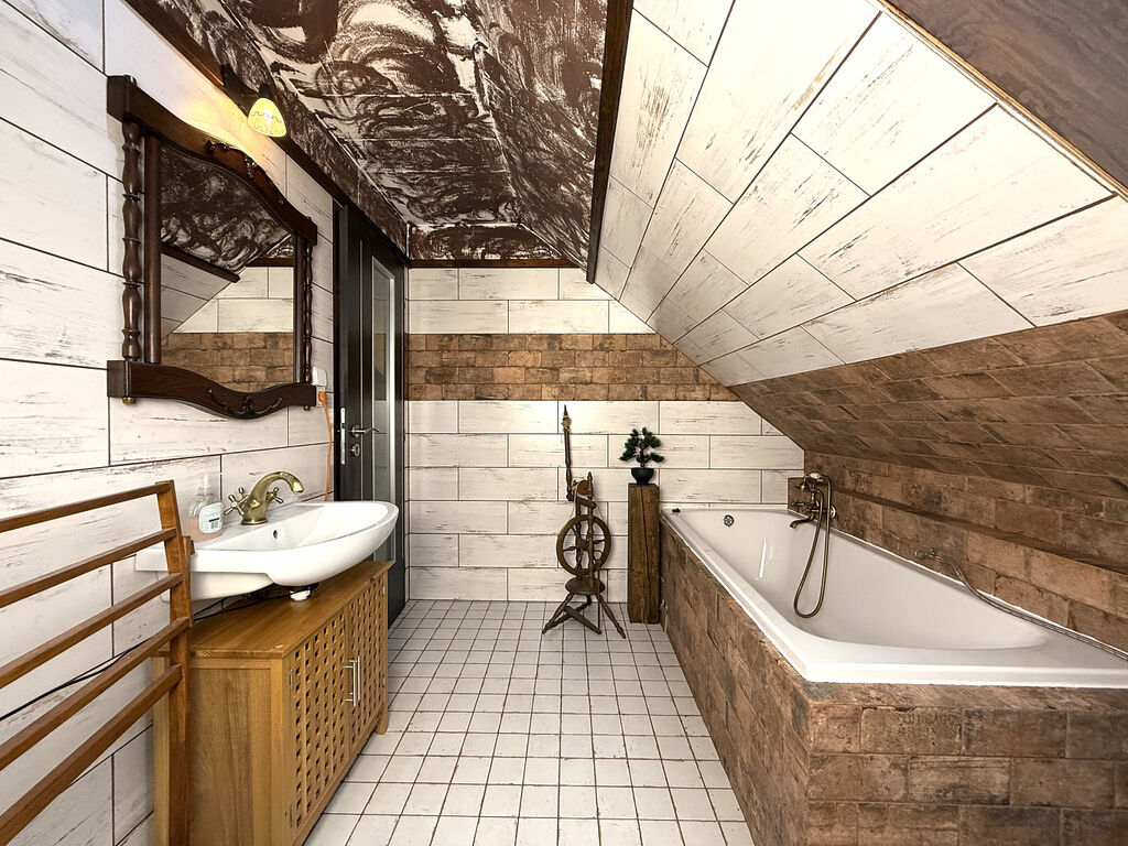 V domě jsou nové elektrické i vodovodní rozvody, podlahové topení (vodní), 2 koupelny, 2 kuchyně, stylová kamna a infrasauna.