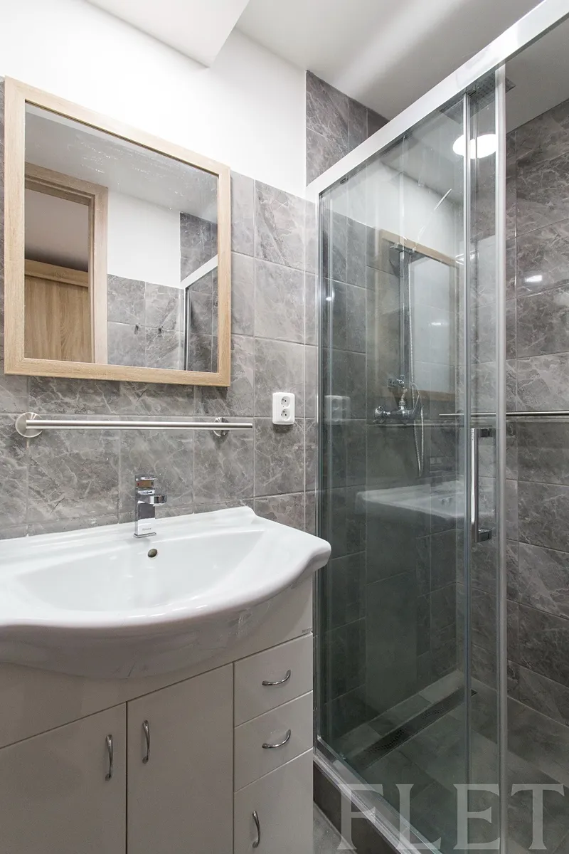 moderní koupelna s prostorným sprchovým koutem, samostatné WC s bidetovým prkénkem