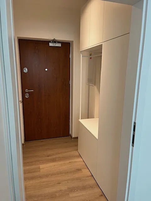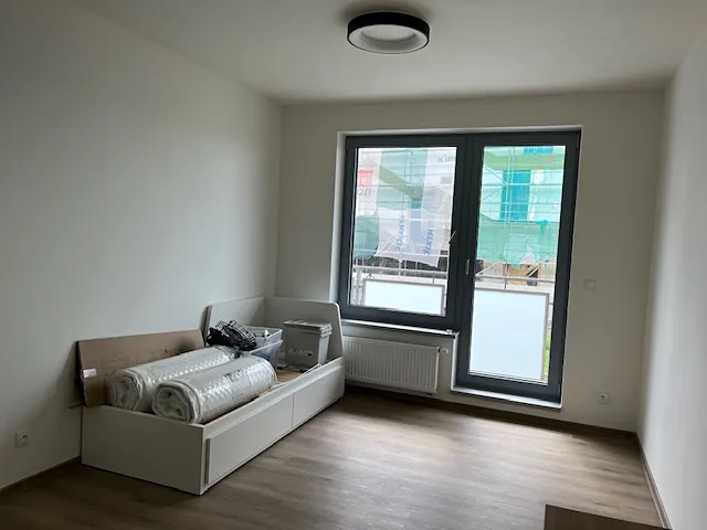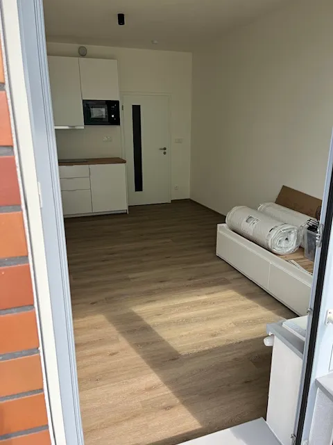 Nabízíme zcela novou jednotku dispozičně řešenou jako 1+kk se slunnou terasou (ateliér), orientovanou na jih směrem do zahrady. Nachází se v novém moderním funkcionalistickém domě který byl stavěn ve vysokém standardu. Jednotka je vybavena hliníkovými okny s předokenními žaluziemi, bezpečnostními dveřmi, kompletně vybavenou kuch. linkou, šatní skříní. Možno ponechat i nové rozkládací lůžko dle fotografie.