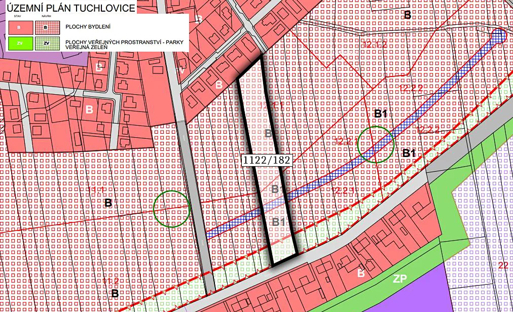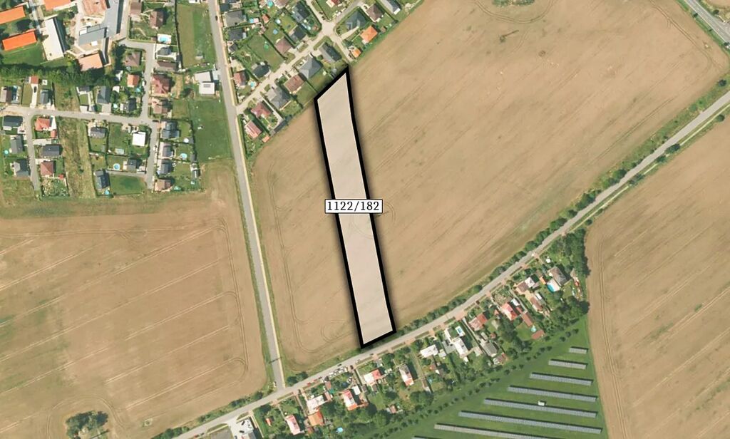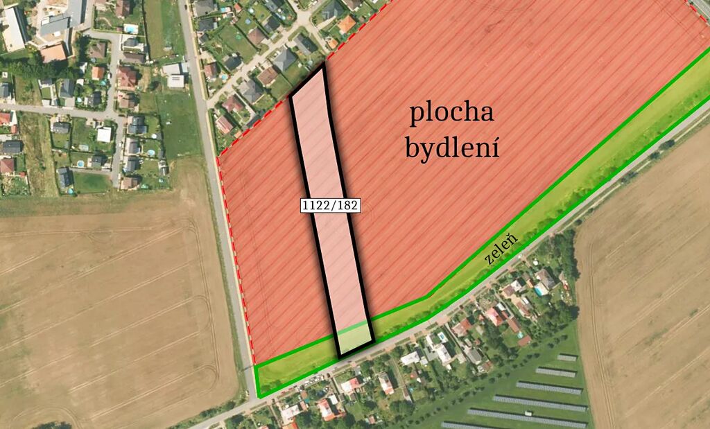 Parcela je zapsána na listu vlastnictví 734 pod číslem 1122/182. K prodeji je do výlučného vlastnictví. Její celková výměra je 8 736 m2. Z toho asi 7 965 m2 je dle územního plánu obce vymezeno pro výstavbu bydlení. Zbytek výměry tvoří pásmo ochranné zeleně. Stavební území navazuje na již existující zástavbu a rozšiřuje ji. K pozemku je zajištěna přístupová cesta.