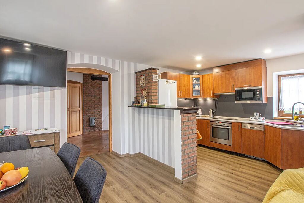 Nabízíme vám rodinný dům v Petrovicích u Jablonného v Podještědí, v Lužických horách. Tento krásný dům, postavený ze smíšené konstrukce, si zachoval svůj původní charakter, avšak prošel kompletní rekonstrukcí do moderního bydlení. Dům má 2 nadzemní podlaží a 1 podzemní podlaží s celkem 5 místnostmi, 4 koupelnami a krásnou velkou zimní zahradou. Plocha pozemku činí 567 m² a užitná plocha domu je 170 m².Dřevěné trámy dodávají interiéru jedinečný šarm. Na venkovní posezení je připravena zastřešená terasa. Poloha domu je ideální pro milovníky přírody – hranice s Německem je vzdálena pouhých 10 minut, stejně jako krásné Žitavské hory. Město Liberec je dostupné za 20 minut. Perfektní kombinace klidu a dostupnosti měst.