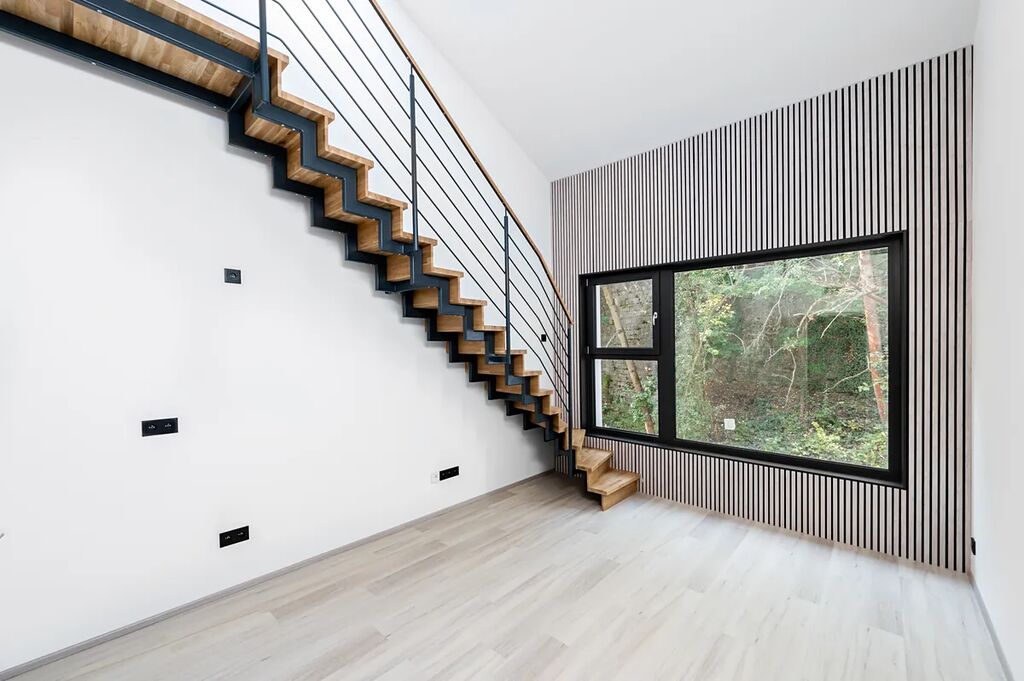 Nový loftový byt 2+kk o celkové výměře 37,3 m2 se nachází v 3. NP. Byt je orientován do klidné části. Jednotka disponuje v dolním patře prostorným obývacím pokojem, vybaveným novou značkovou nadstandardní vestavěnou kuchyňskou linkou včetně kvalitních spotřebičů (lednice s mrazákem, sklokeramická varná deska, myčka na nádobí, mikrovlnná trouba, digestoř) a samostatnou neprůchozí ložnicí v horním patře. Koupelna má sprchový kout, pračku a je spojená s WC. Předsíň nabízí instalovanou šatní skříň. Byt se pronajímá částečně zařízený.