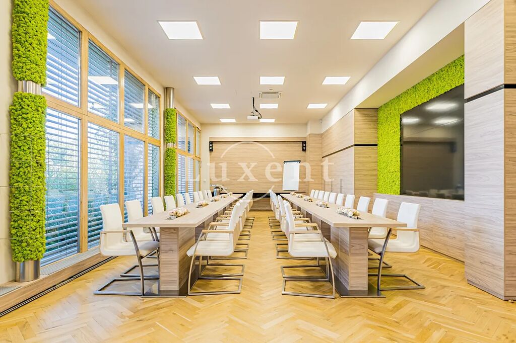 Budova má rovněž k dispozici dvě zasedací místnosti. V objektu nalezneme také zrekonstruovanou restauraci s letní zahrádkou. Parkovací stání v areálu je za poplatek. Možnost převodu sídla firmy.