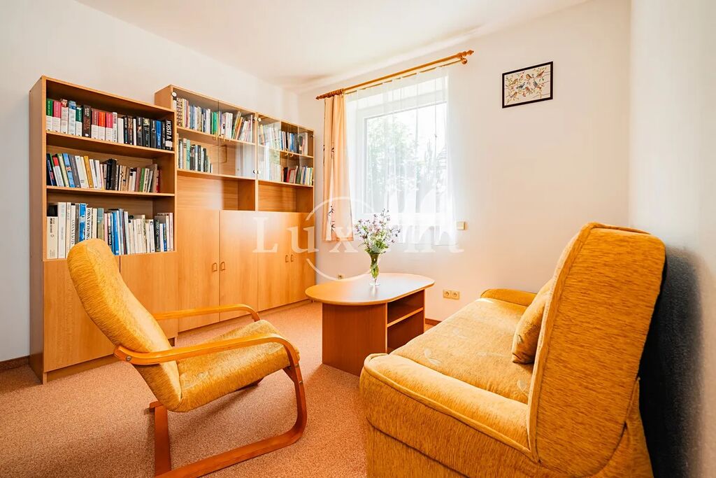 Přízemní rodinný dům s obytným podkrovím o dispozici 5+1 má podlahovou plochou bytu 151 m², prostornou garáž 32 m² a půdní úložný prostor 20 m². V přízemí se nachází vstupní zádveří, hala, kuchyně s jídelním koutem, světlý obývací pokoj s krbovými kachlovými kamny, samostatná pracovna a toaleta s umyvadlem a pračkou. Podkroví nabízí klidné útočiště s ložnicí a dvěma dalšími pokoji s výhledy do krajiny, šatnu/komoru, koupelnu s vanou, masážní sprchou, umyvadlem a toaletou a navazující chodbu.
