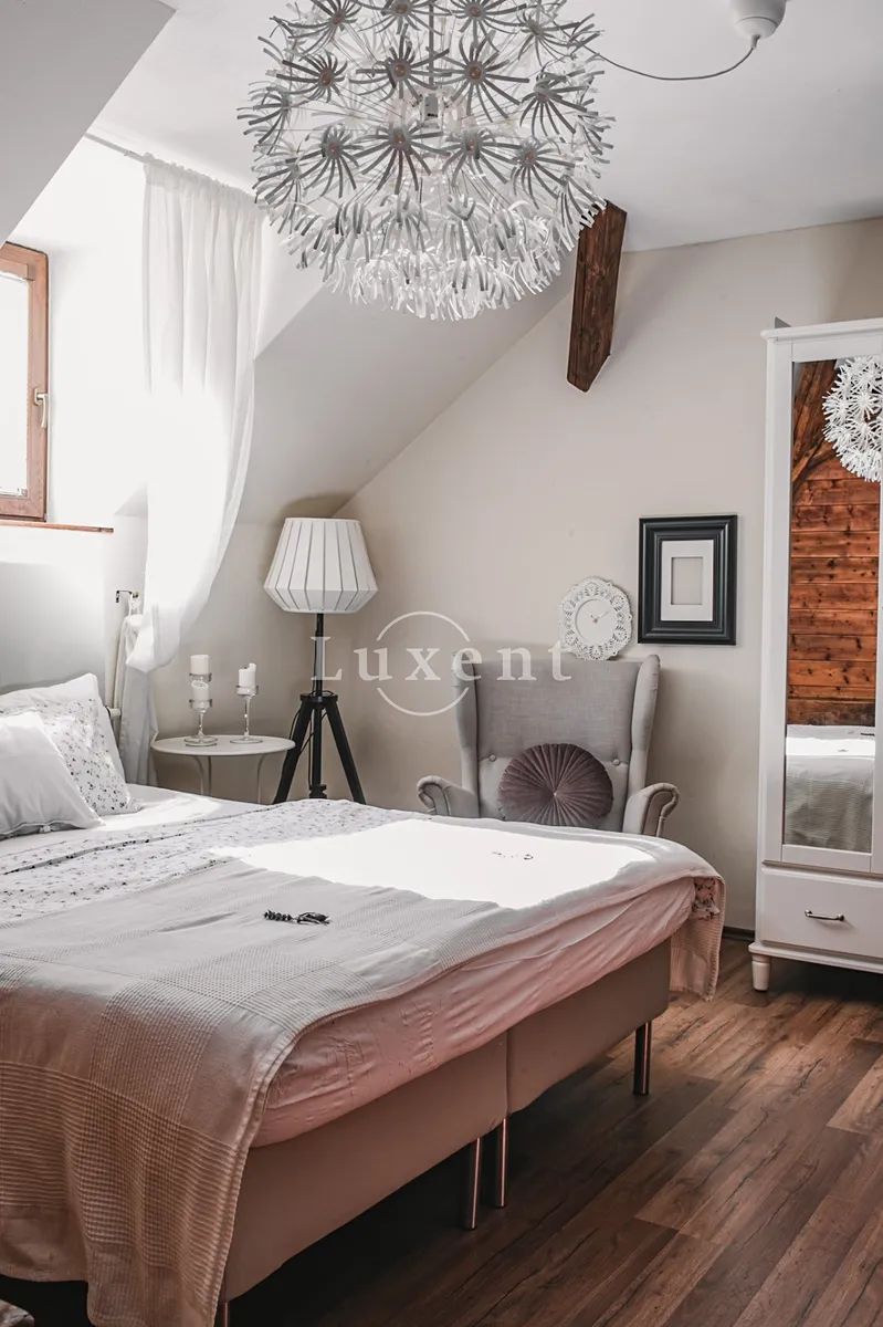 Nabízíme k prodeji stylový designový rodinný dům na pozemku o celkové rozloze 2.272 m2 situovaný v krásné šumavské lokalitě s výhledem do údolí – na konci obce Masákova Lhota, Zdíkov, okres Prachatice. Oblast je součástí CHKO Šumava. Chalupa z poloviny minulého století byla v průběhu posledních let novými majiteli s uměleckým citem rekonstruována na rodinný dům s ubytováním. Dům má vlastní studnu, zahradu (bezmála 2000 m2) s pergolou, se zahradním altánem s barem, malým dětským hřištěm (viz foto).