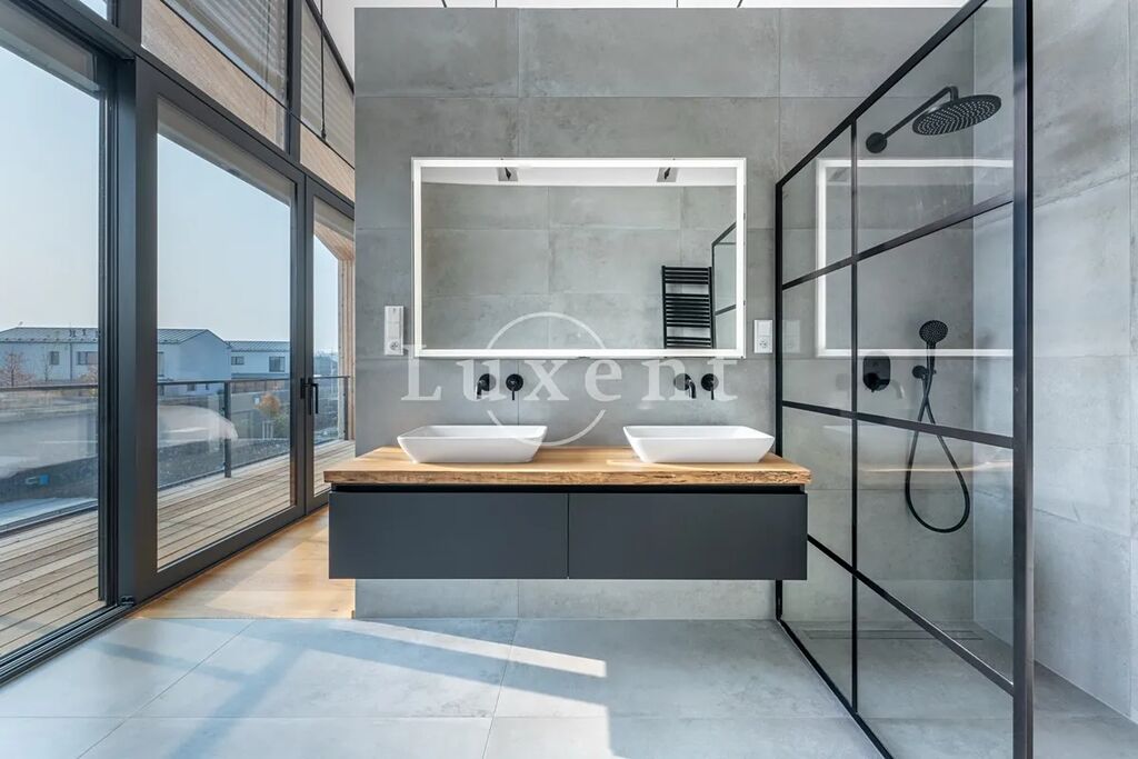 2.NP nabízí velkorysou ložnici (20 m²) s prosklením až do štítu domu a HS portálem, který umožňuje vstup na lodžii ( 11,6 m2) s krásným výhled. Součástí ložnice je koupelna ( 10,6 m²) s vanou, sprchovým koutem, dvěma umyvadly a samostatnou toaletou. Na patře jsou další tři ložnice, ke kterým naleží další koupelna s vanou, sprchovým koutem, dvěma umyvadly a toaletou.