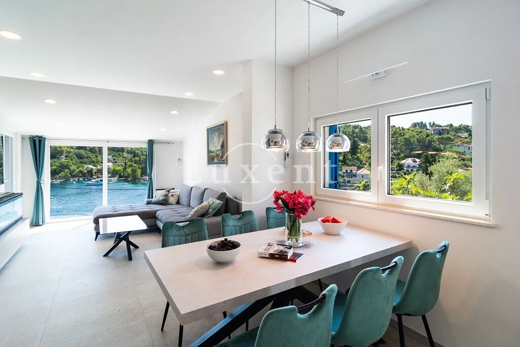 Nabízíme k prodeji nádherně zrekonstruovaný dům v první řadě u moře, přímo u malebné zátoky s pláží. Dům o celkové obytné ploše 125 m² se rozkládá na dvou podlažích a nabízí okouzlující výhled na moře i soukromý přístup k vodě.