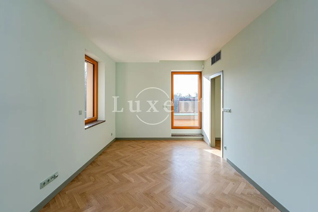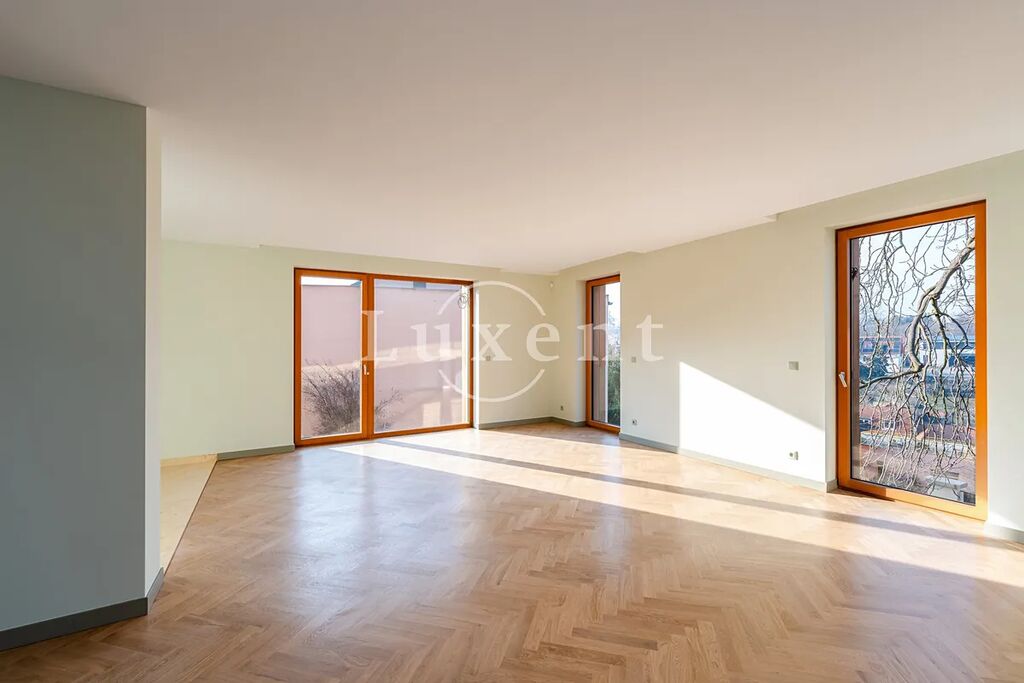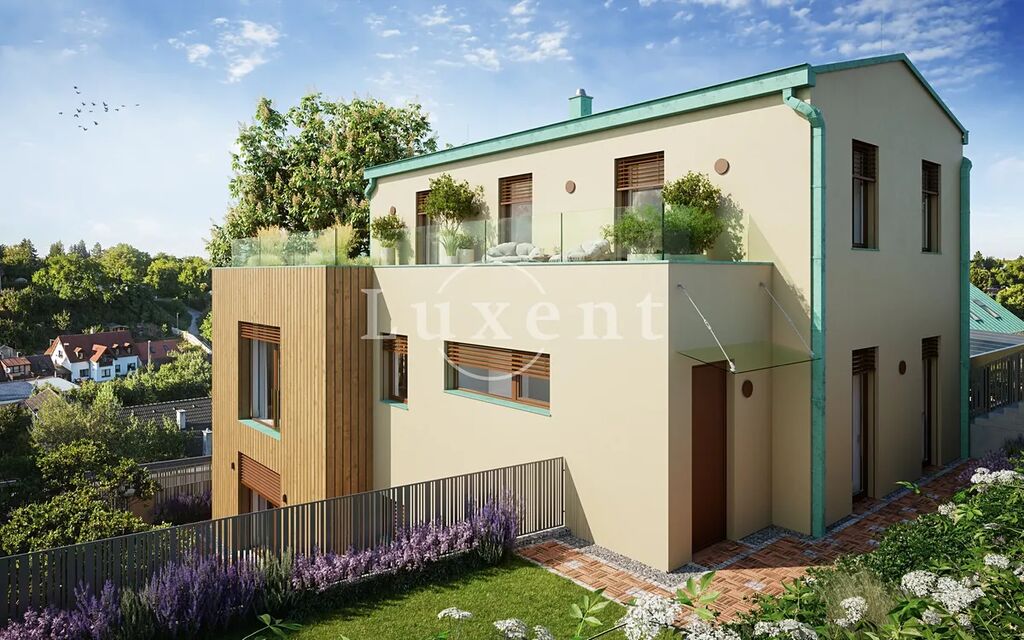 Nabízíme k prodeji výjimečný mezonetový byt v II. etapě projektu Rezidence Pod Rybníčkem, o dispozici 4+kk se samostatným vstupem, který dodává maximální soukromí a nádherné výhledy v oblíbené lokalitě Praha 6 - Suchdol. Tento designový byt o celkové užitné ploše 283 m², splňuje parametry bydlení v rodinném domě. Podlahová plocha bytu je 175 m², zahrádka je o velikosti 114 m² a střešní terasa o velikosti 15,40 m². K bytu náleží dvě parkovací stání a sklad.