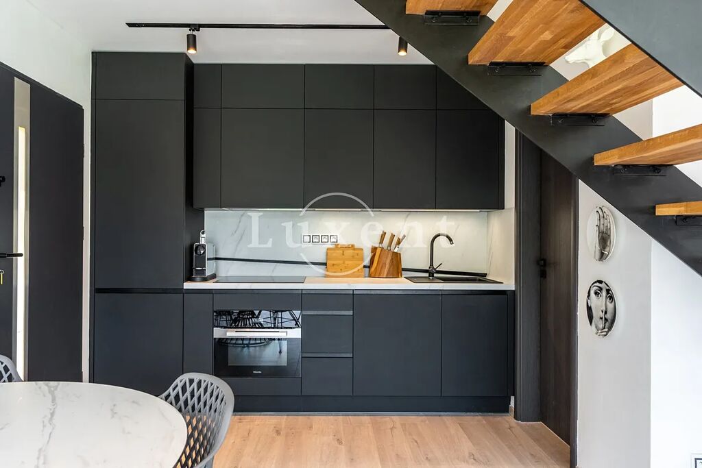 V přízemí se nachází prostorný kuchyňský kout propojený s obývacím pokojem o celkové rozloze 25 m2. Součástí přízemí je také koupelna o rozloze 4 m2. Druhé nadzemní podlaží disponuje dvěma podkrovními pokoji. První pokoj má rozlohu 13,5 m2 a druhý 8,4 m2, což poskytuje dostatek prostoru pro pohodlné bydlení.
