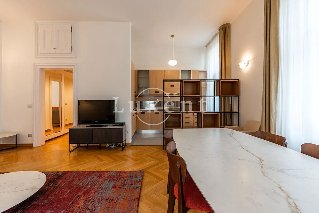 Nabízíme k pronájmu kompletně zařízený prostorný byt 2+kk s balkonem o užitné ploše 71 m2 ve vyhledávané lokalitě Prahy 5 na Malé Straně. Byt je situován ve třetím patře historického činžovního domu z 19. století, který prošel kompletní rekonstrukcí, v rámci které byl mimo jiné vybudován podzemní parking. Parkování je k dispozici za příplatek. Budova má velmi reprezentativní vstup a stejně jako v každé exkluzivní rezidenci je i zde recepce.