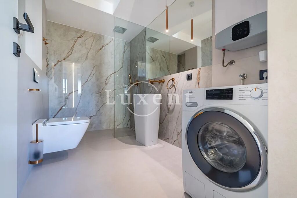Nabízíme k prodeji exkluzivní apartmán, který se nachází v přízemí nově dokončeného projektu v jedinečné lokalitě Punta Sukošanski Blata v Sukošanu. Tento apartmán nabízí panoramatické výhledy, přímý přístup k moři a vlastní bazén. Projekt se vyznačuje moderní architekturou a vysokou kvalitou použitých materiálů a zpracování.