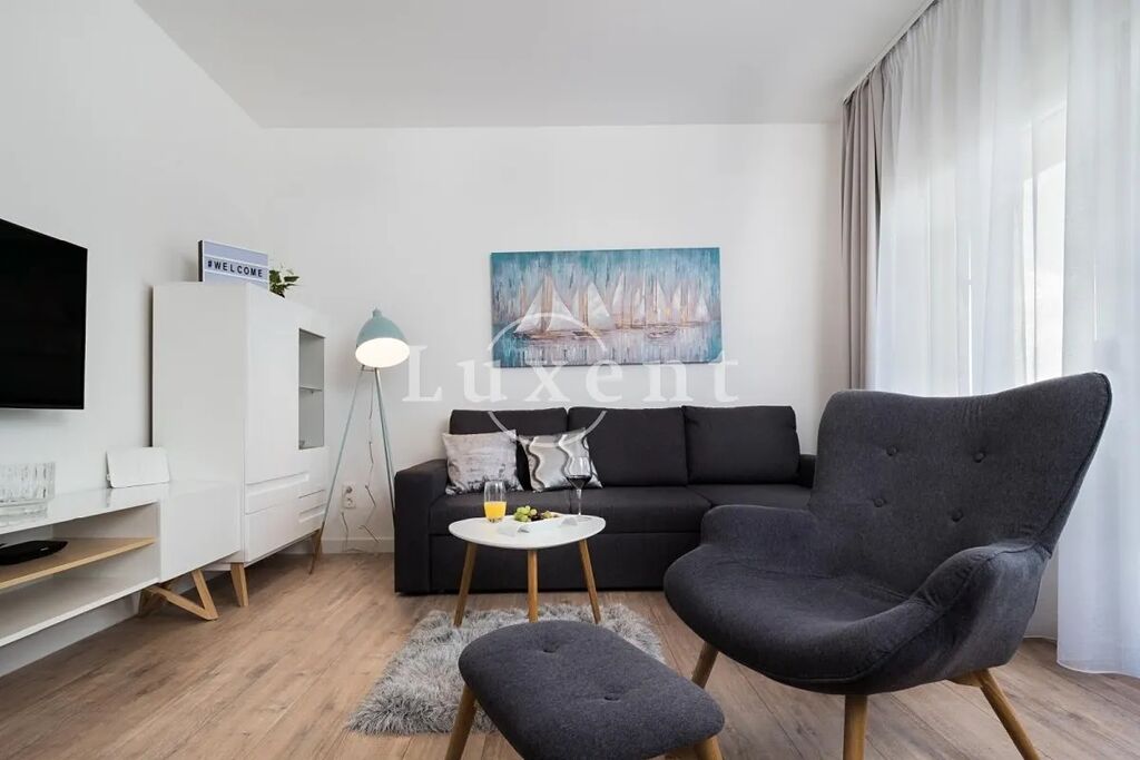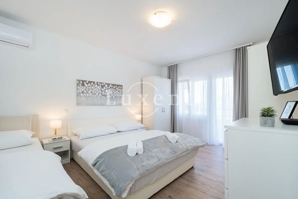 Nabízíme na prodej jedinečný apartmán o velikosti 63 m², který se nachází v první řadě u moře, pouze 50 metrů od pláže. Apartmán nabízí moderní a komfortní bydlení s jednou ložnicí a koupelnou. Byl kompletně a velmi elegantně zrenovován, což se odráží v jeho moderním vzhledu. Interiér byl navržen tak, aby maximálně využíval přírodní světlo a nabízel komfort v každém detailu.