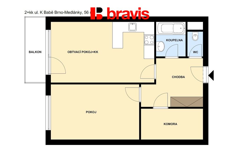 Ve výhradním zastoupení majitele nabízíme k pronájmu útulný byt o dispozici 2+kk s balkonem a praktickou šatnou, který se nachází v 1. NP cihlového bytového domu s výtahem v klidné a oblíbené lokalitě Brno–Medlánky.