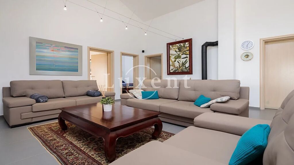 Tato nemovitost se nachází na rozsáhlém soukromém pozemku, který zahrnuje olivový háj vysazený v roce 2006, s celkem 665 olivovníky, což dává novému majiteli možnost výhodné produkce olivového oleje. K dispozici je také sklep o rozloze 300 m2, ve kterém se nachází moderní lisovna oliv. K nemovitosti patří podzemní nádrž na vodu o objemu 200 000 litrů a odsolovač, který denně produkuje 7 000 litrů pitné vody.