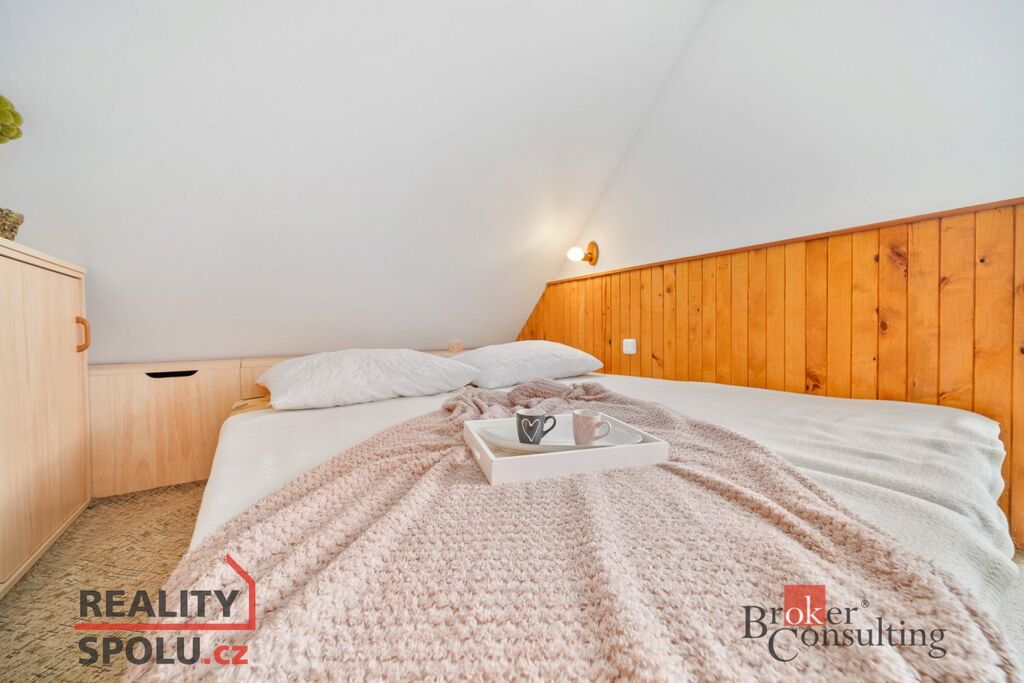 V přízemí se nachází kuchyně spojená s obývacím koutem a jídelním stolem. Z obývacího pokoje je přímý vstup na slunnou terasu, kde si vychutnáte ranní kávu nebo večerní posezení. V podkroví jsou tři útulné pokoje a balkon s nádherným výhledem do okolní přírody.